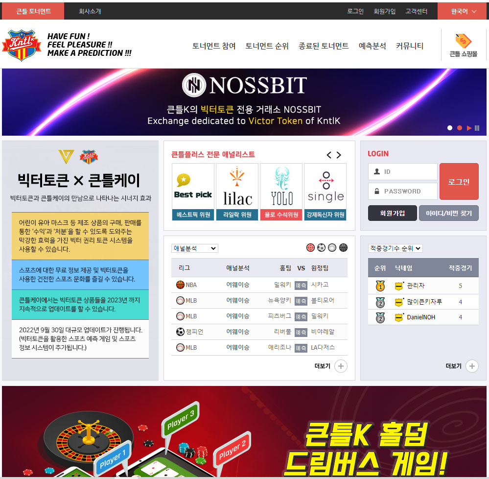 게임에 대한 예측 정보는 큰틀케이 홈페이지(http://kntlk.com/)를 통해 제공될 예정이다.