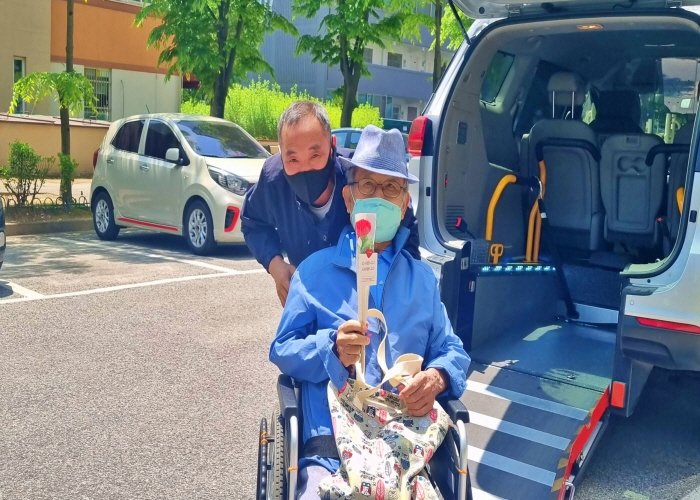 차량 탑승 시 운전원이 직접 이용객에게 카네이션을 달아드렸다.