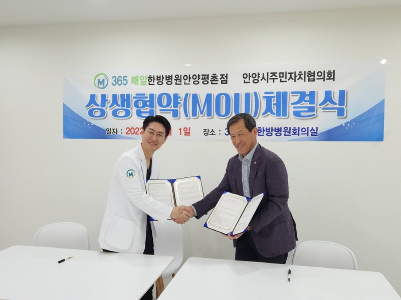[안양시 소비자저널=장주연기자] 안양시는 지난 1일 안양시 주민자치협의회(회장 박종배)가 365매일한방병원 안양평촌점(병원장 정연재)과 지역사회 상생협약을 체결했다고 5일 밝혔다.