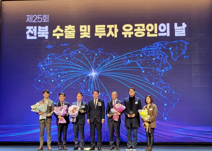 [전주시 소비자저널=최훈 기자] 김제시 소재 기업 3개 사가 13일 전주 그랜드힐스턴 호텔에서 열린‘제25회 전북 수출 및 투자유공인의 날’행사에서 ’22년 전라북도 수출 및 투자 유공 업체로 포상받는 영예를 안았다.