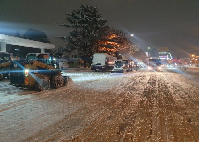 구체적으로 시는 출근길 불편을 최소화하기 위해 기존 운영해온 제설 장비 35대를 모두 투입하고, 전날 오후 11시부터 이날 오전 6시까지 스키로더 11대와 그레이더 3대를 추가 임차해 제설 현장에 투입했다.