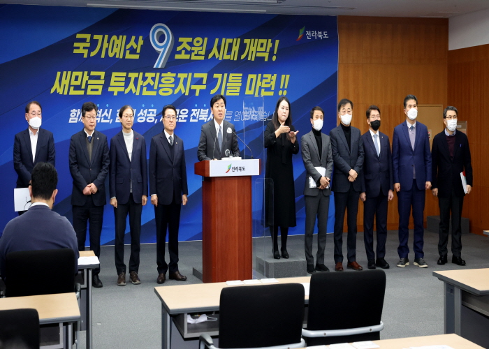이날 기자회견에는 한병도 의원, 정운천 의원, 김윤덕 의원, 김성주 의원, 신영대 의원, 김수흥 의원, 이원택 의원, 안호영 의원 등 국가예산 확보 과정에서 노고를 아끼지 않은 도내 국회의원들이 자리를 함께했다.