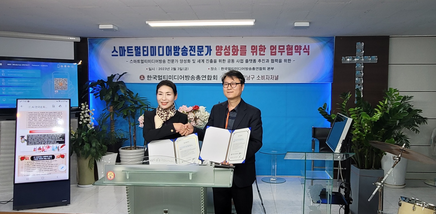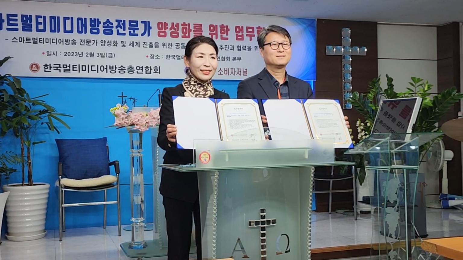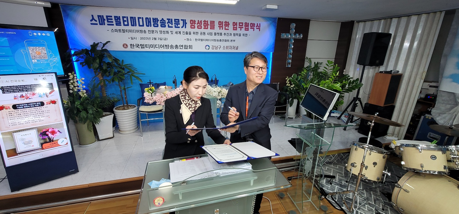 [강남구 소비자저널=김은정 대표기자] 한국멀티미디어방송총연합회(회장 윤여재, 이하 한방연)는 지난 3일(금) 오후 8시 서울시 강서구 소재 한방연 본부에서 '스마트멀티미디어방송전문가 양성화를 위한 사업' 등에 관해 강남구 소비자저널(발행인 / 대표 김은정)과 업무협약 채결을 했다고 밝혔다.