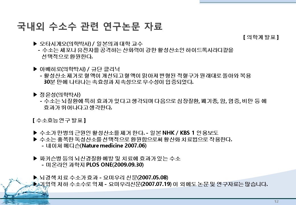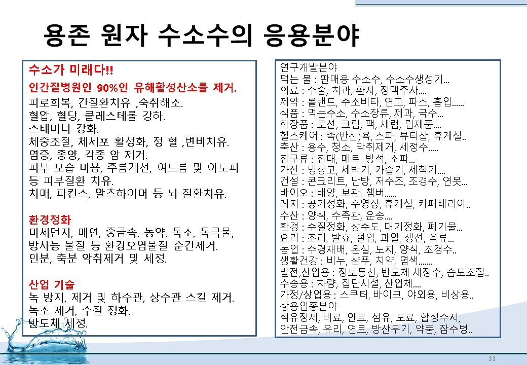 (주)한국용존원자수소수연구원, 사업계획서 본문