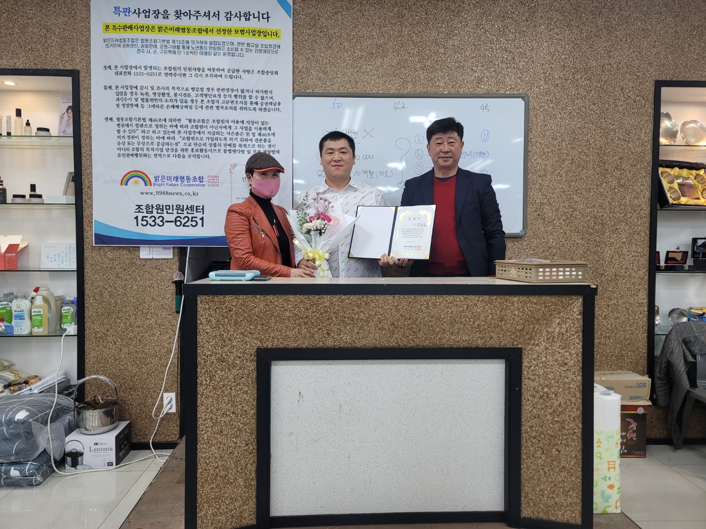 “법 테두리 안에서 소비자보호제도 성실 이행” 밝은미래협동조합, ‘멀티ss샾’에 모범사업장 인증서 전달