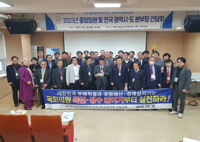 (사)공직공익비리신고 전국시민운동연합(이하 공신연)은 25일 대전광역시립손소리복지관에서 전국본부장 회의를 열고 이 같은 성명서를 채택했다고 밝혔다.
