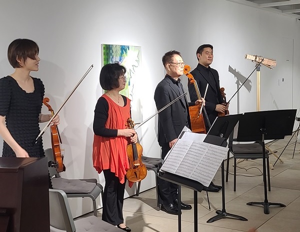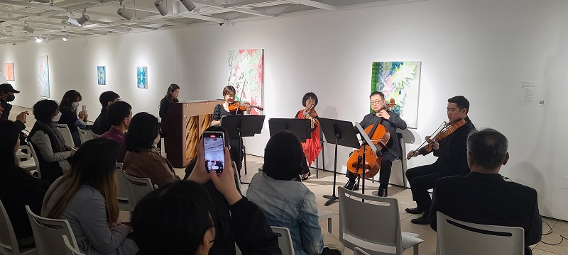 '만장일치'란 말이 있다. 토를 달지 않고 모두가 찬성이란 뜻이다. 예술의전당 지하도에 청년들을 위해 만들어진 서리풀 갤러리에서의 K 악기 콘서트가 그랬다.(4월 6일 6시). 연주가, 청중 모두가 정상에 오른 우리 악기로 솔로 현악 4중주를 들으며 놀랐다.이구동성으로 K 악기의 새로운 출발을 선언하는 날이었다. 거창하게 꾸며진 음악회도 아니고 거드름 피우는 명사들이 참여한 것도 아니다. 그러나 청중과 연주가들은 대만족을 표시한 기분 좋은 날이었다.