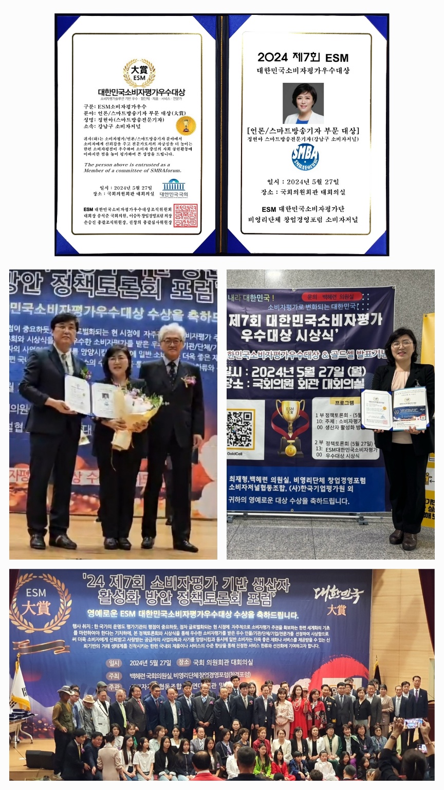 2024 제7회 대한민국소비자평가우수대상 언론/스마트방송기자 부문 대상 수상