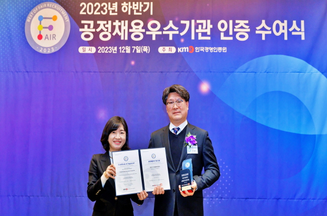 공단은 한국경영인증원(KMR)으로부터 ‘2023년 공정채용 우수기관’ 인증을 받았다고 7일 밝혔다.
