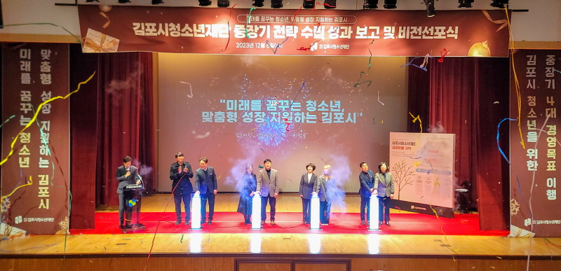 [김포시소비자저널=홍완호 대표기자] (재)김포시청소년재단이 지난 6일(수) 김포중봉청소년수련관 대강당에서 ‘김포시청소년재단 중장기 경영계획 수립 성과 보고 및 비전선포식’을 개최하고 새롭게 수립된 비전과 중장기 4대 전략목표와 12개 전략과제를 발표했다.