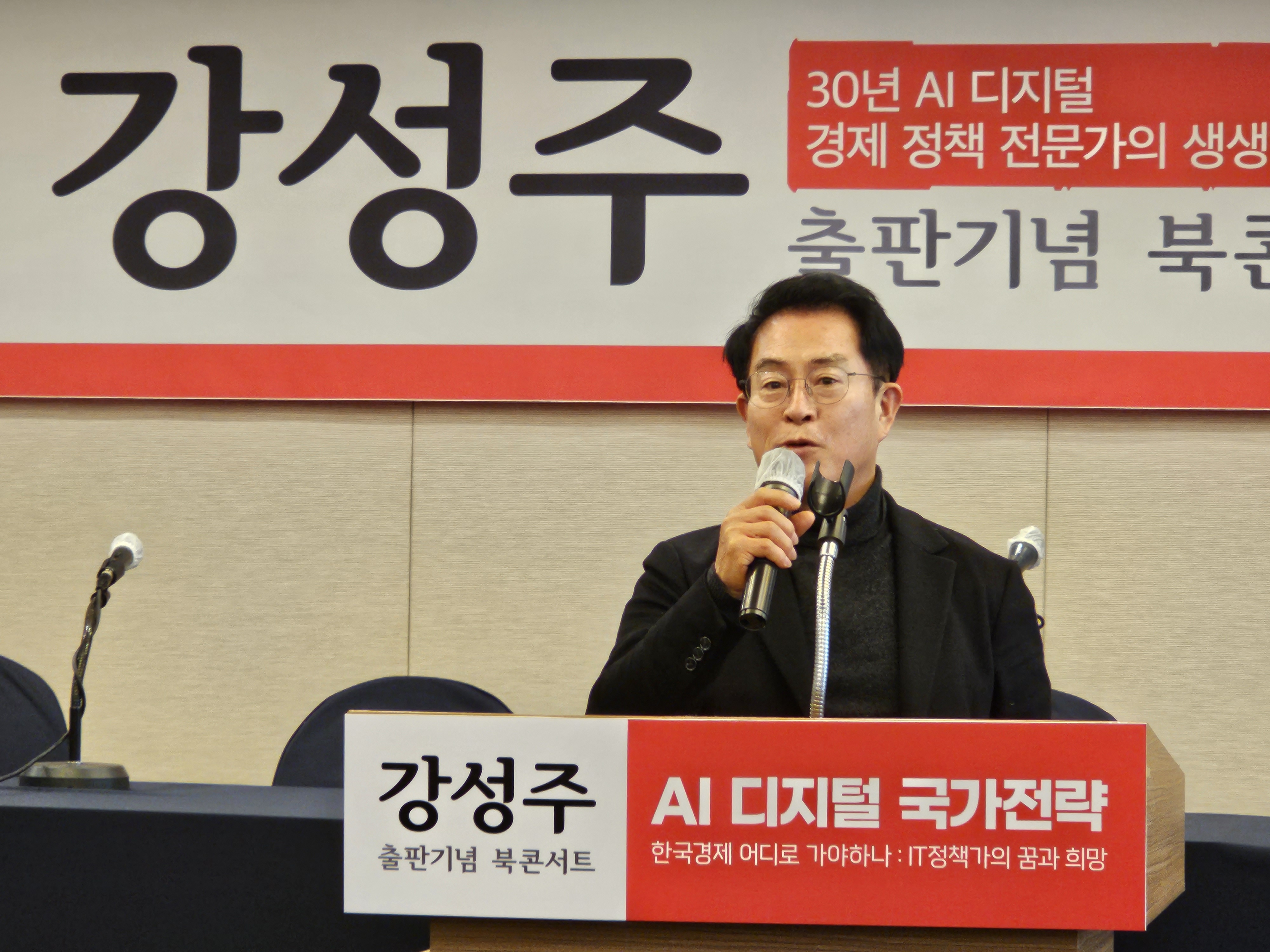이날 강성주 전 우정사업본부장이 지난 30여 년간 글로벌 AI 디지털 현장에서 직접 뛰어온 경험을 토대로 『AI 디지털 국가전략』이라는 책을 출판했으며, 경제 정책 전문가의 생생한 육성을 직접 듣고자하는 많은 분들의 성원에 힘입어 북콘서트를 개최하게 됐다.