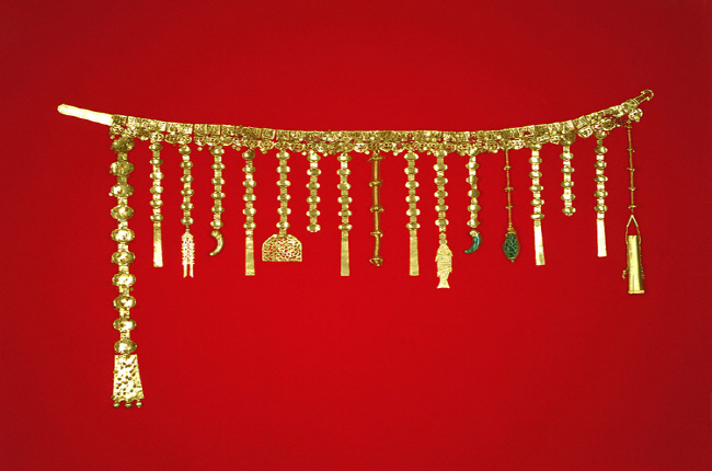 오는 9월부터 3개월 간 신라 금관총 출토유물인 금관(국보)과 금허리띠(국보), 아사지왕명 큰 칼 등이 장수역사전시관에서 전시될 예정이다.