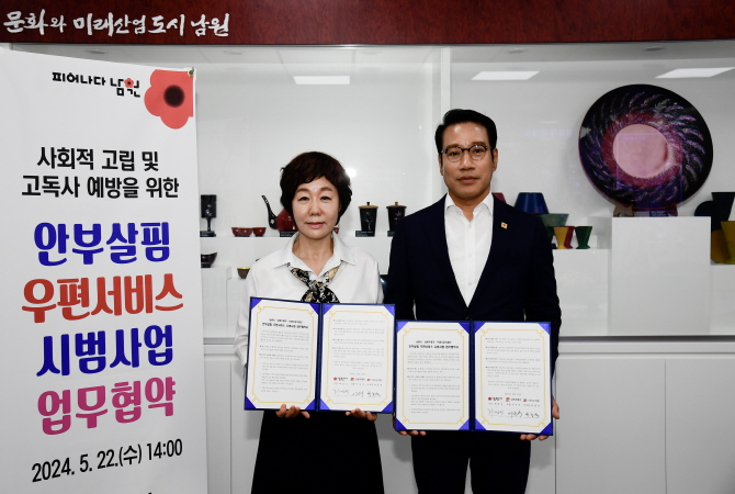 [전북 소비자저널=최훈 기자] 남원시가 22일 남원우체국, 우체국공익재단과 업무협약을 체결하고 올해 6월부터 안부살핌 우편서비스 시범사업을 추진한다.