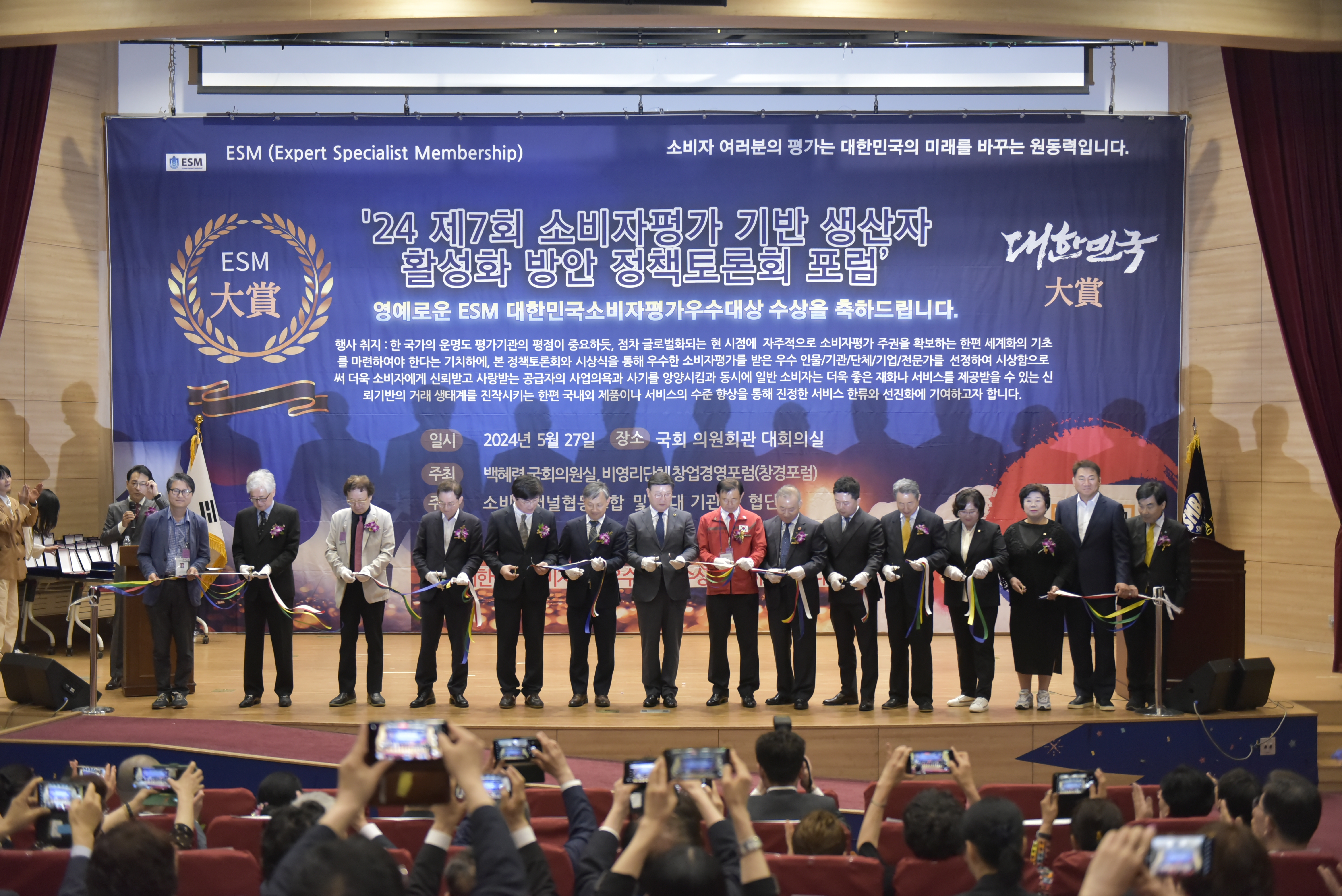 2024 제7회 소비자평가데이터 기반 생산자 활성화 방안 정책토론회 및 ESM 대한민국소비자평가우수대상 시상식이 지난 2024년 5월 27일 오후 2시부터 6까지 국회의원회관 대회의실에서 열렸다.