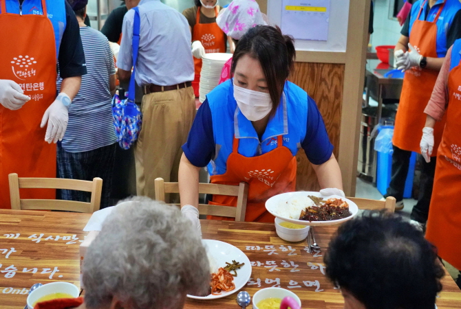 이날 이성경 노조 사무국장을 비롯한 조합원 10여 명은 이날 정성껏 준비한 점심 식사를 어르신 100여 명에게 대접했다.