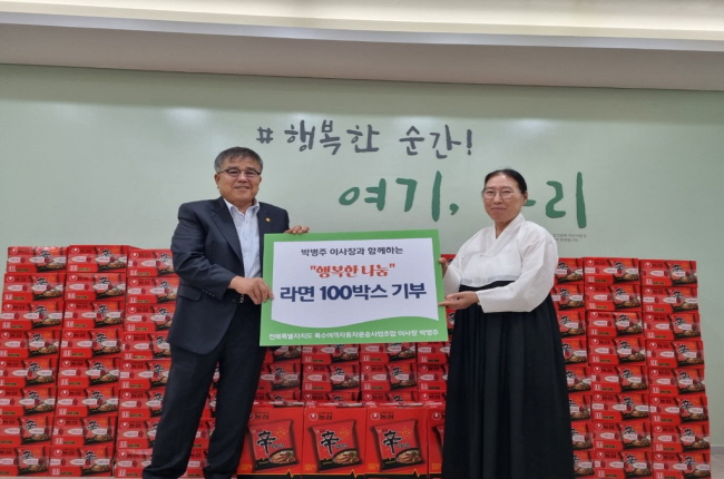 [전북 소비자저널=최훈 기자] 전북특별자치도 특수여객자동차운송사업조합(이사장 박병주)이 전주시 행복나눔 푸드마켓에 후원물품인 라면 100박스를 기부했다.