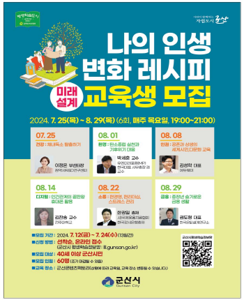 한편 그동안 군산시는 2019년부터 다양한 주제로 미래설계 교육과정을 운영해 왔으며, 앞으로도 다양한 평생학습 교육과정을 제공할 계획이다.