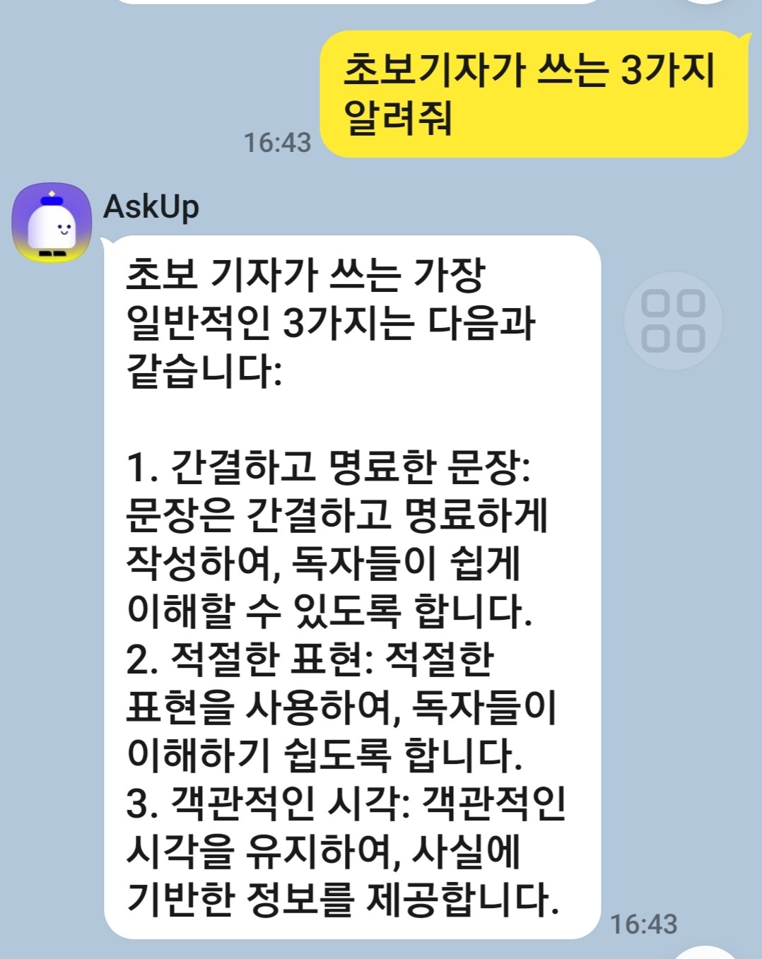[강남구 소비자저널=조정민기자] (주)소소생생 전문기자단은 8월 6일 교육에서 아숙업 통하여 질문이나 그림을 받아오는 실습을 했다. 앞으로 기사를 쓰는 데 아주 좋은 활용이 될 것이다.