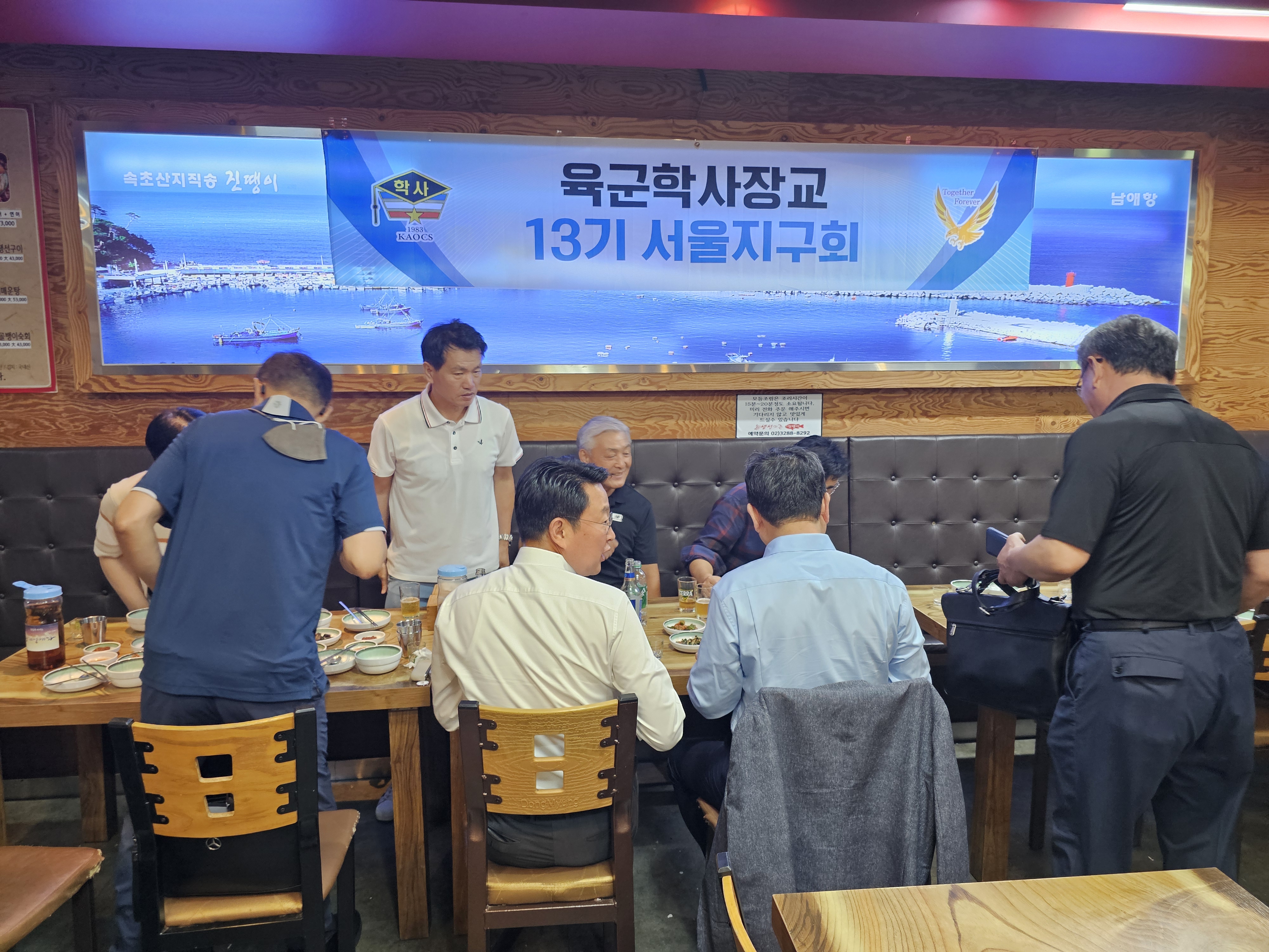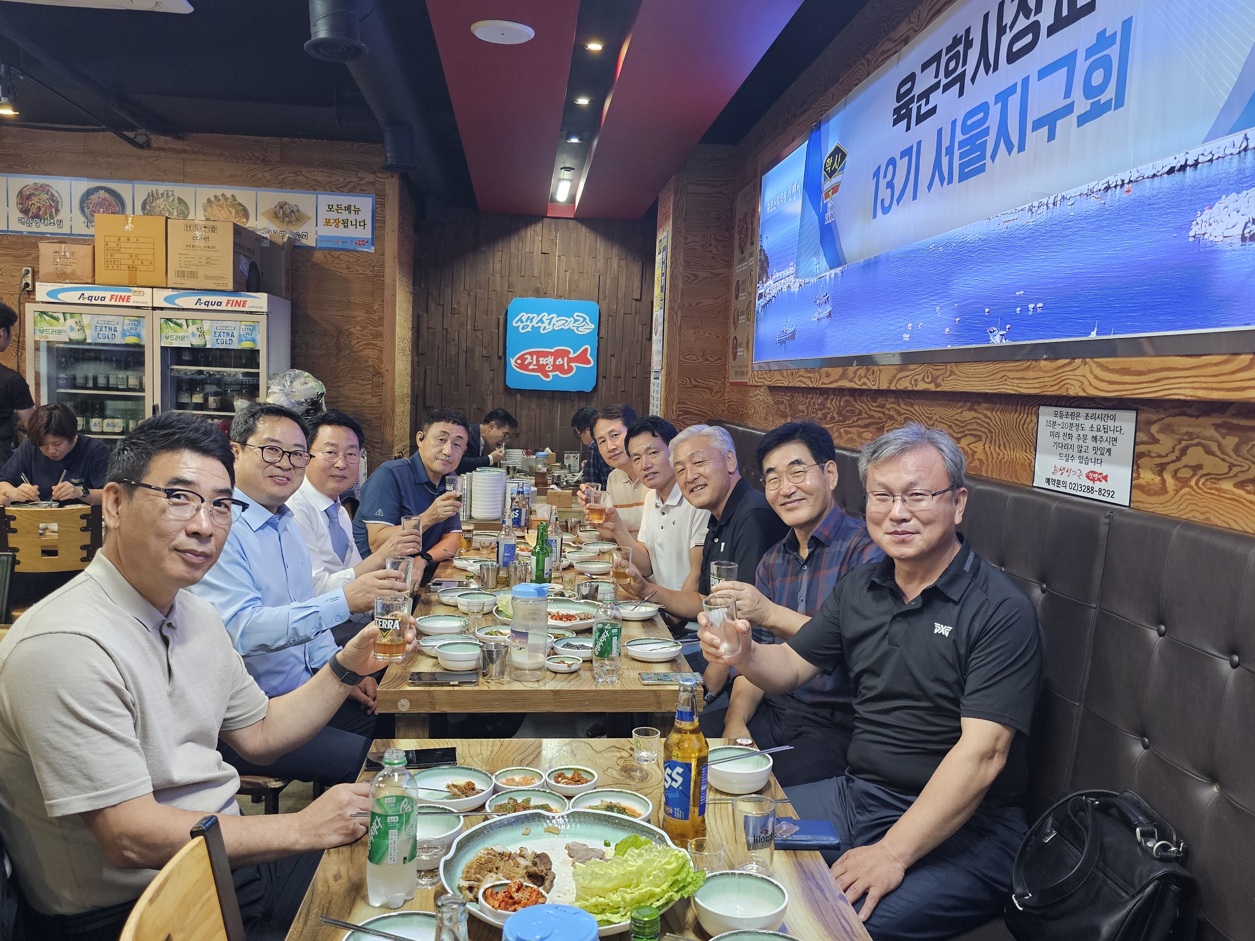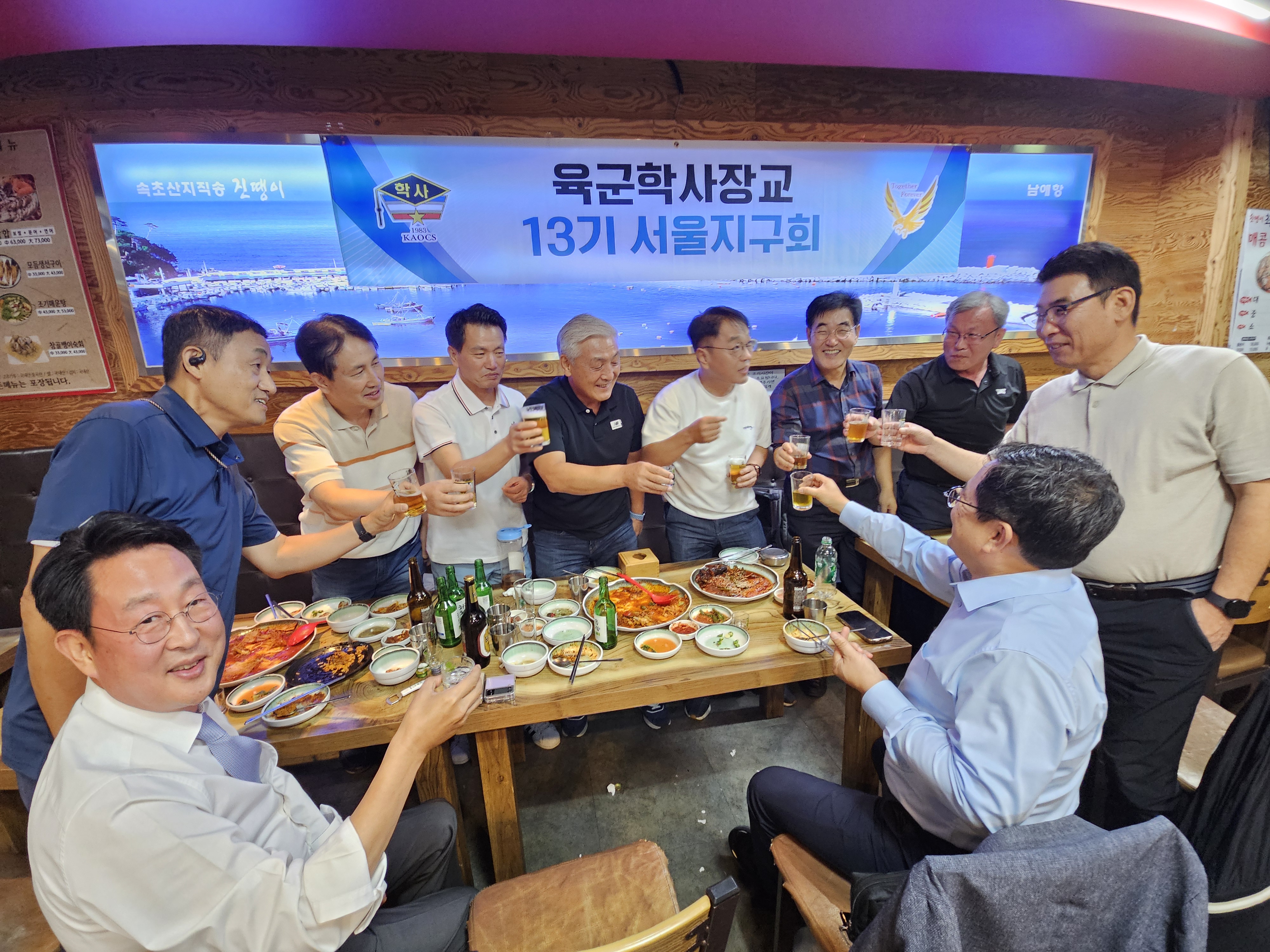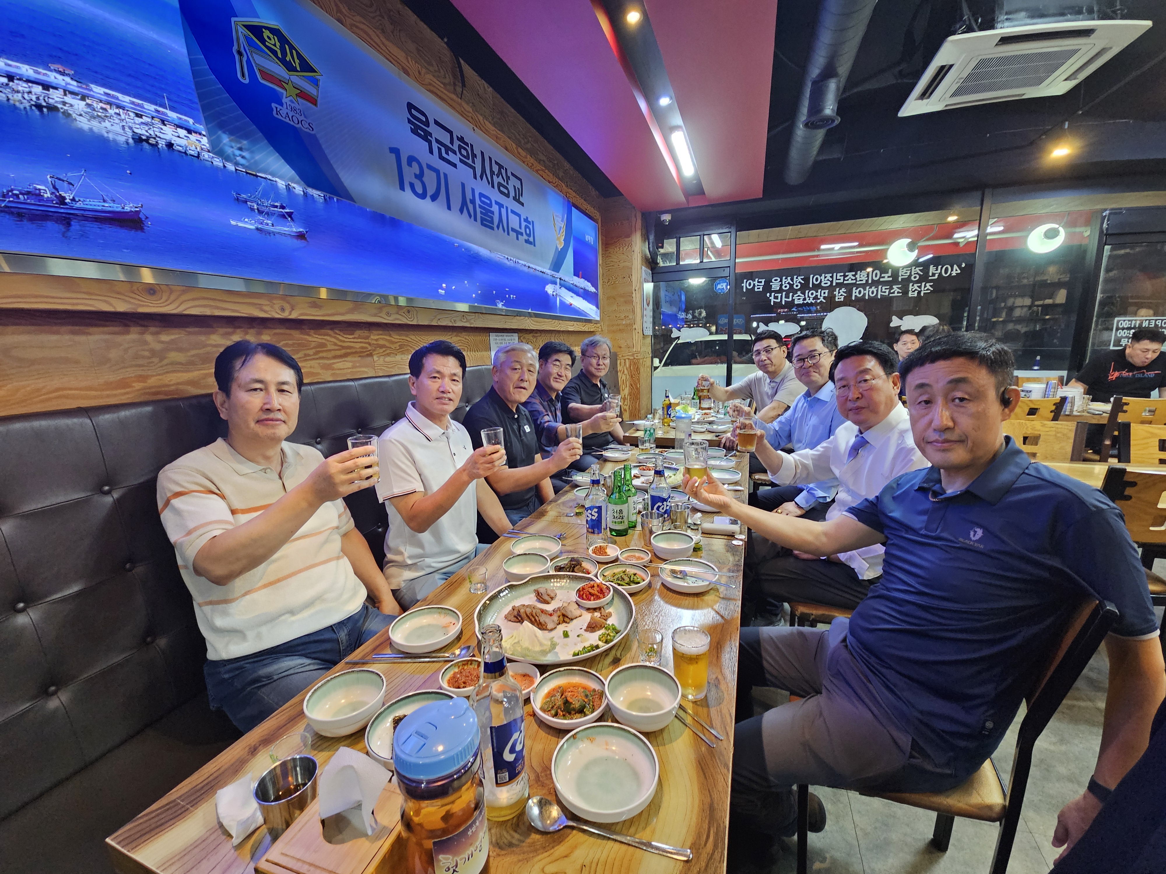 [강남구 소비자저널=김은정 대표기자] 학사장교 13기 서울지구회(회장 조문형)는 지난 27일(금) 서울시 강남구 소재 진땡이 식당에서 제2대 회장 선출 기념으로 첫 모임을 가졌다.