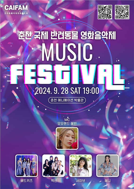 강원도 춘천시(시장 육동한)가 주최한 ‘춘천 반려동물 페스티벌, (Caifam)국제 반려동물 영화음악제가' 27일 개막하여 춘천애니메이션 박물관 일대에서 성황리에 진행되었다. 반려동물영화음악제, 반려동물 산업박람회, 반려견 걷기대회 등 다채로운 프로그램으로 구성된 이번 행사는 반려인과 반려동물이 함께 즐길 수 있는 문화축제로 춘천시를 대표할수 있는 축제로 많은 사람들이 함께했다.
