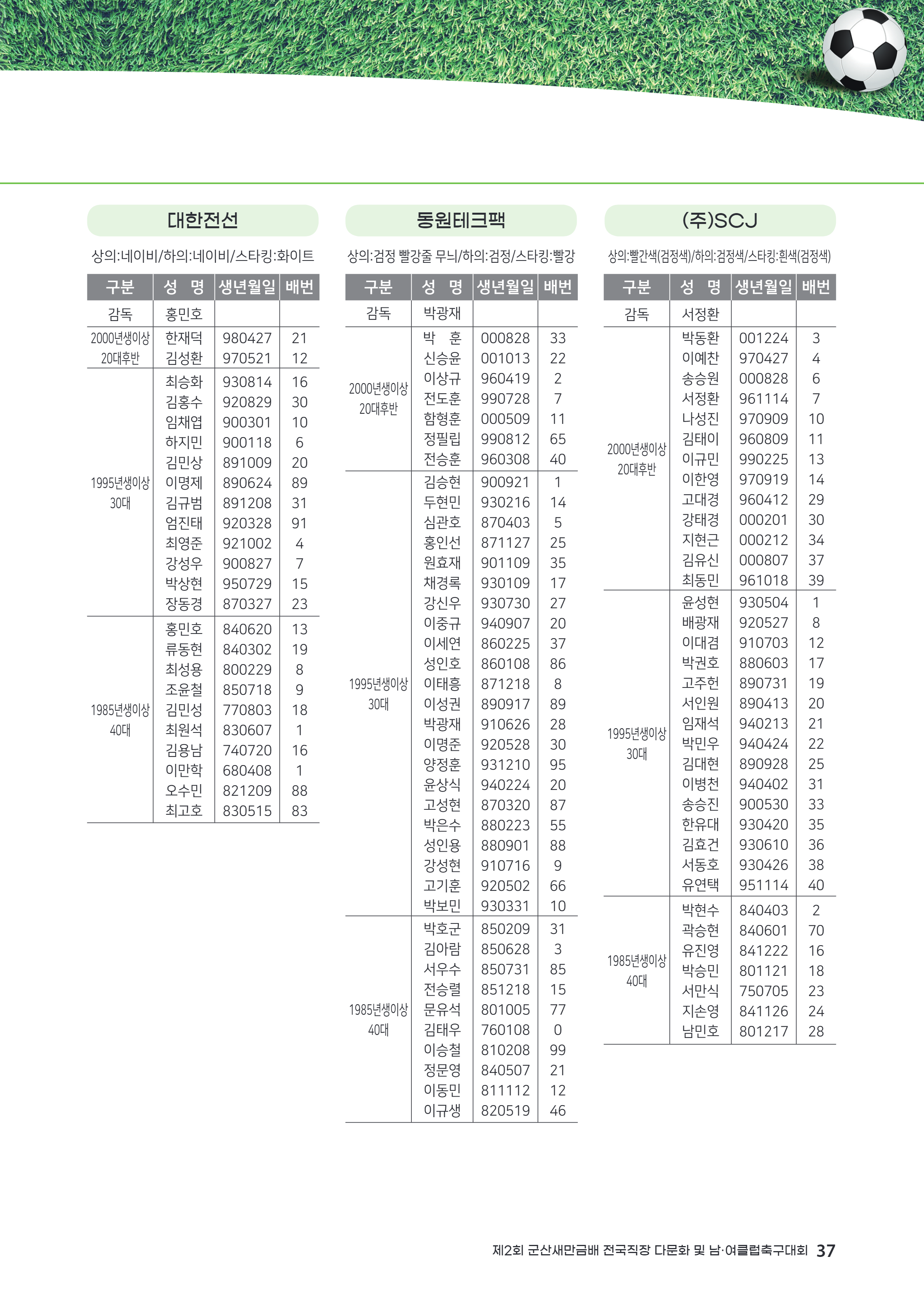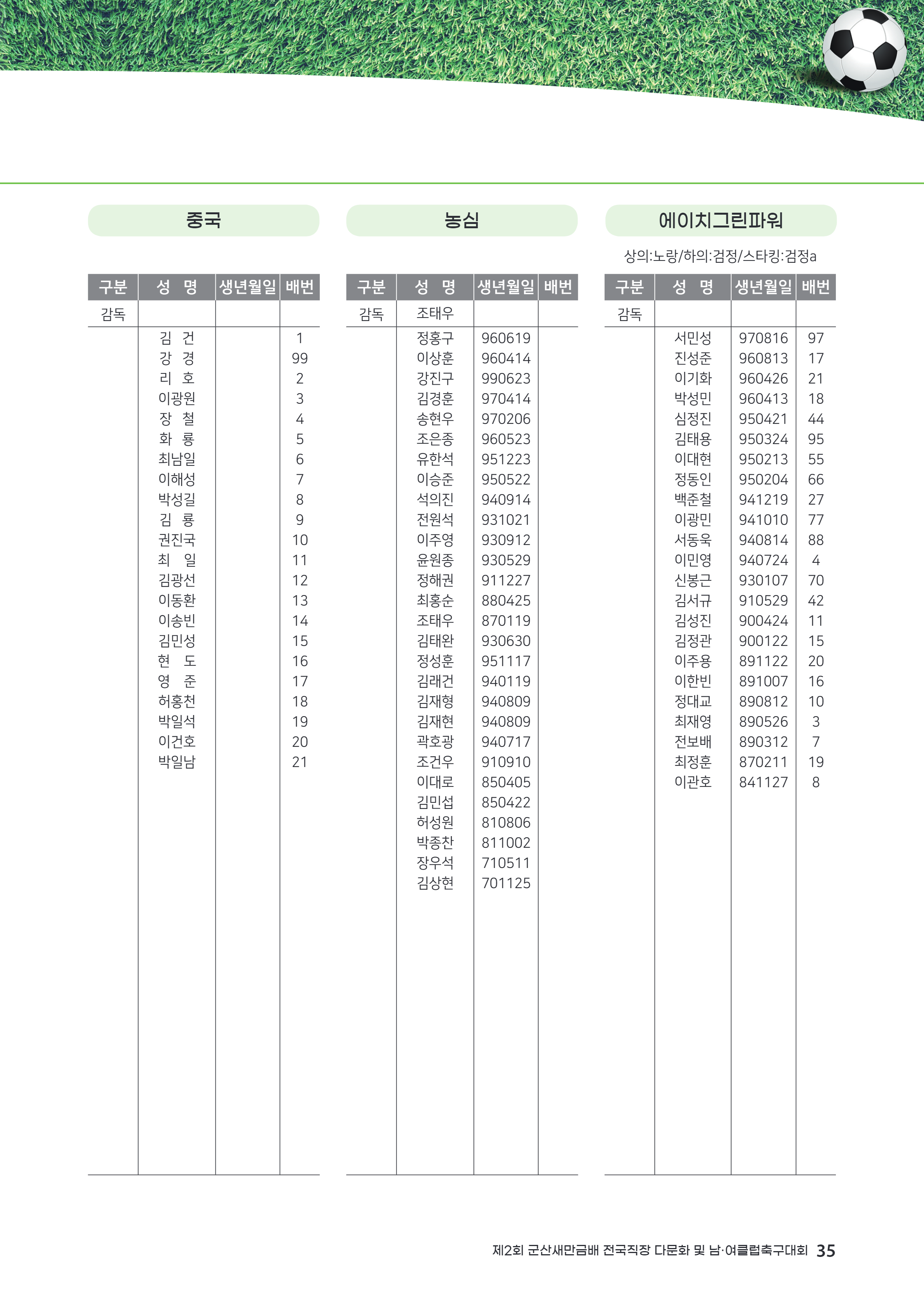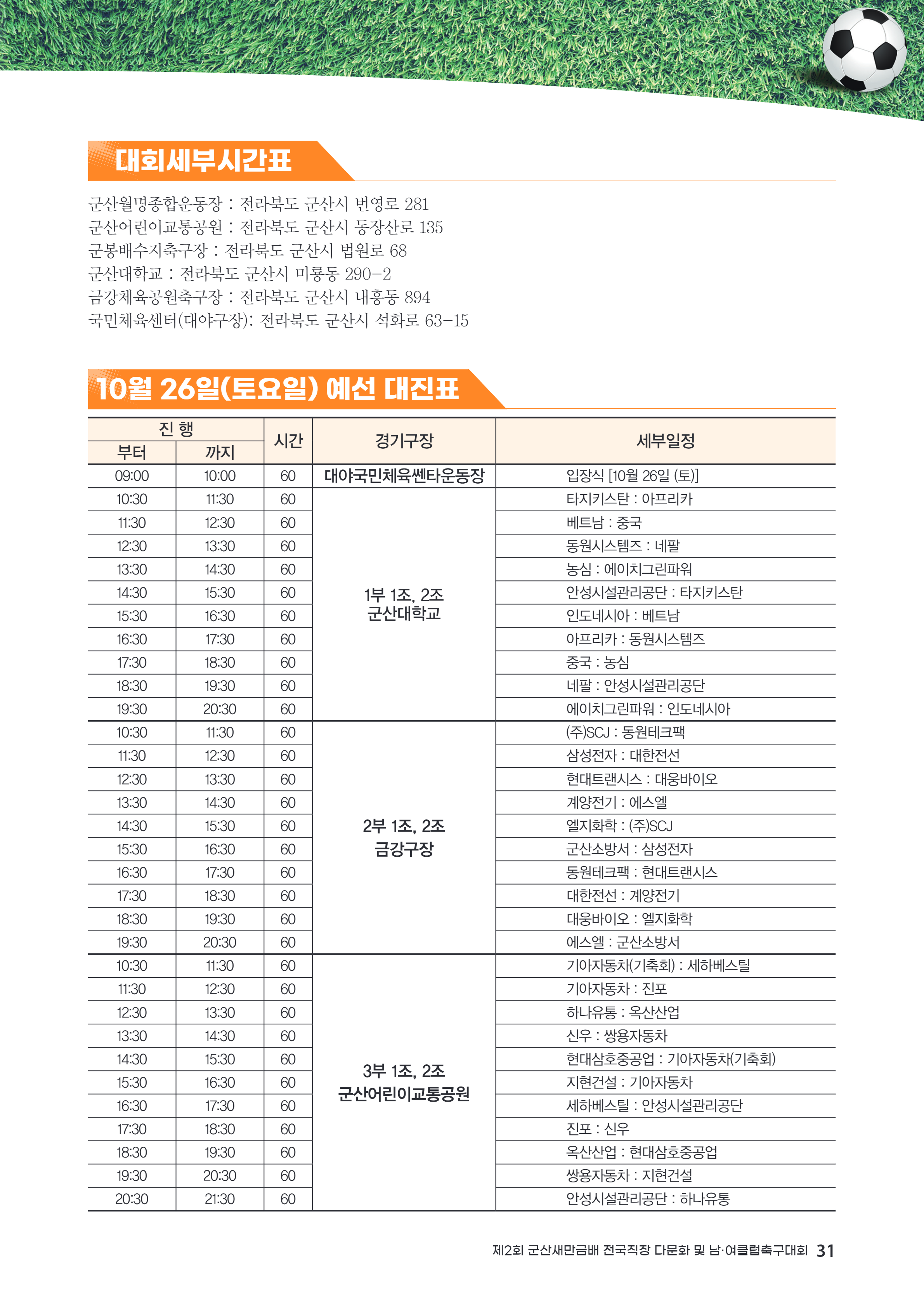 제2회 군산새만금배 전국직장 다문화 및 남·여클럽축구대회 대진표 및 선수명단 본문