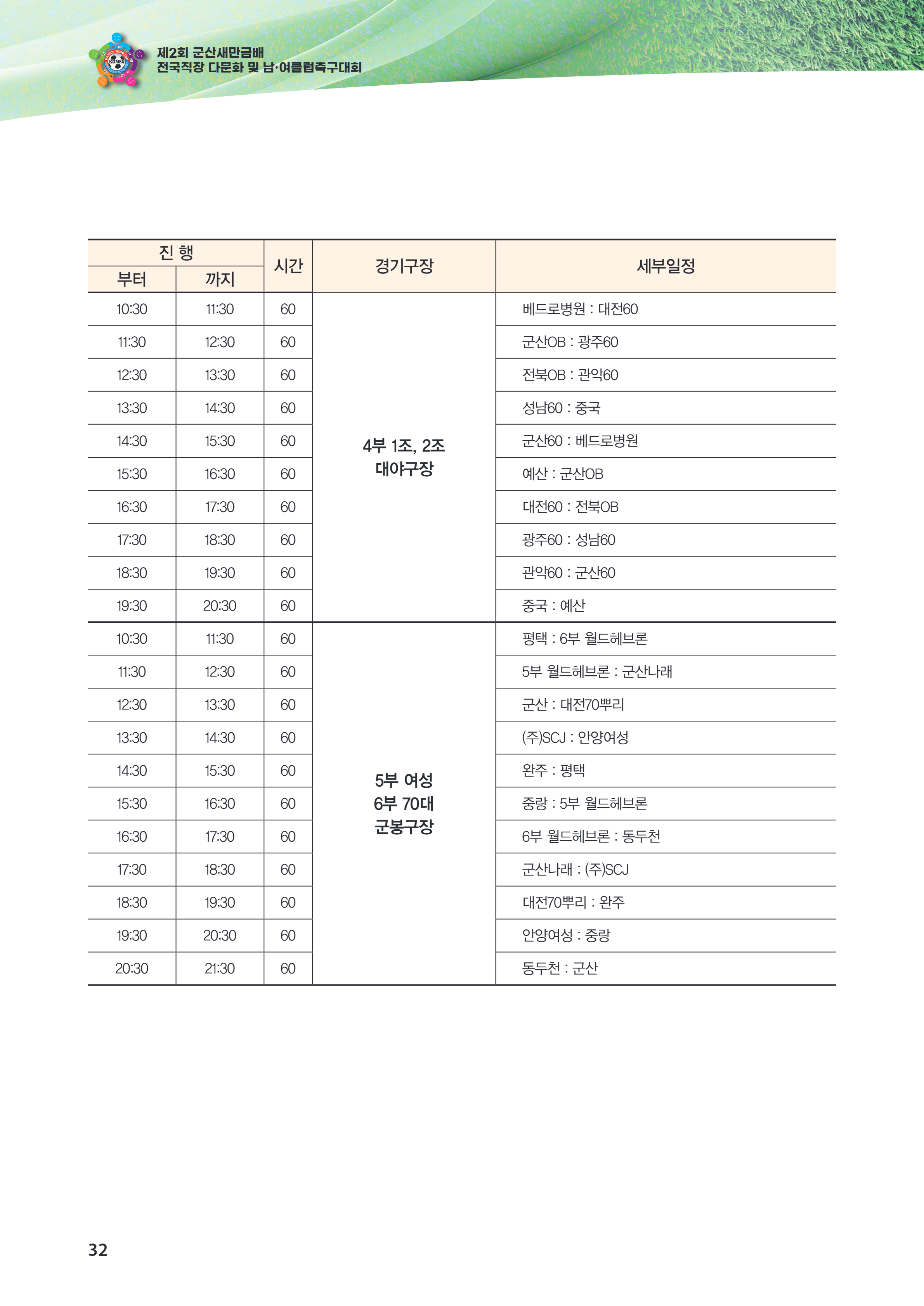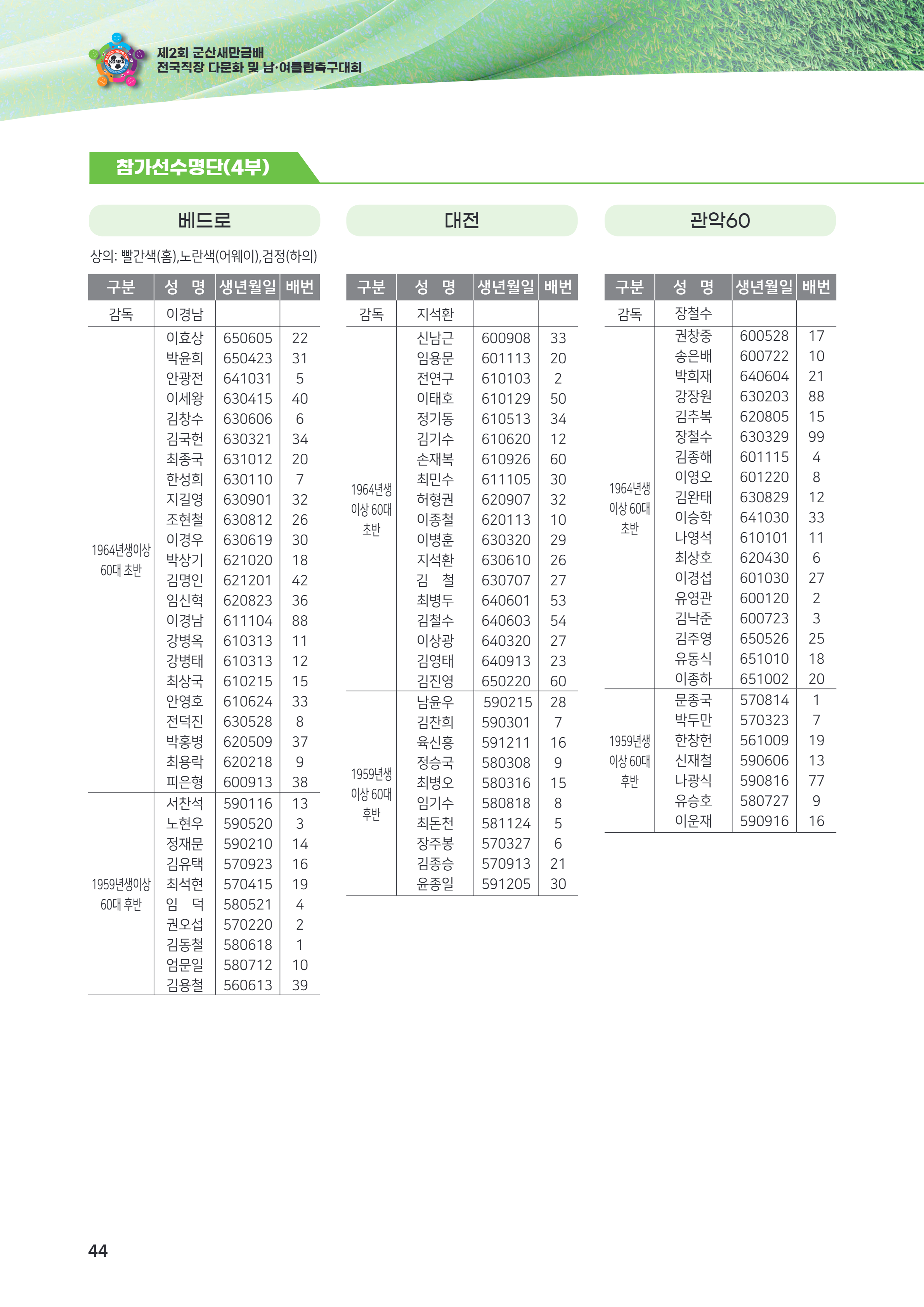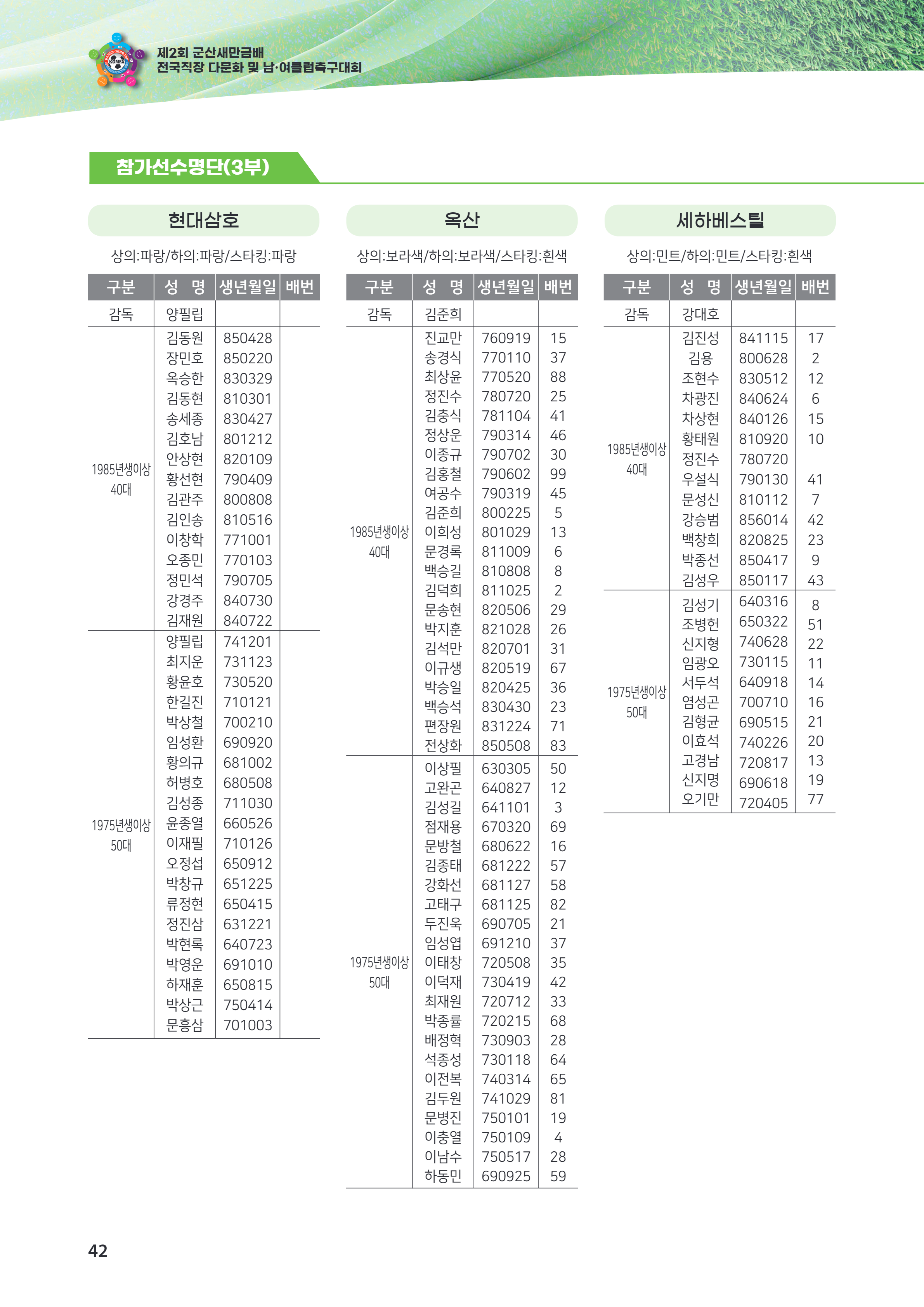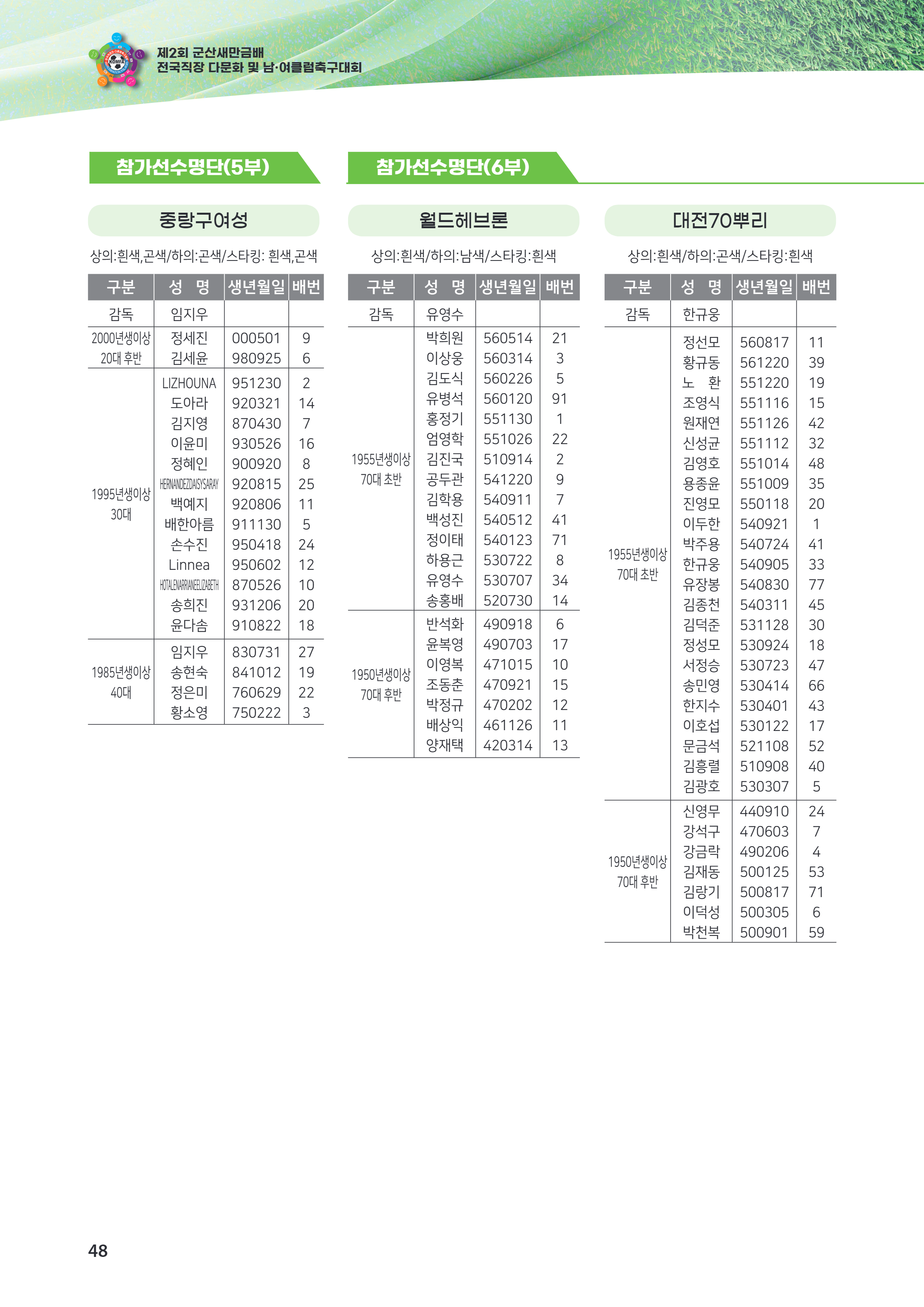 제2회 군산새만금배 전국직장 다문화 및 남·여클럽축구대회 대진표 및 선수명단 본문