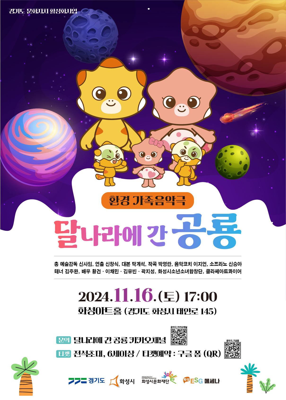 환경음악극 '달나라로 간 공룡' 은 오는 11월 16일 화성아트홀 무대에 오른다. 이를 총괄지휘하는 이는 총예술감독 신사임 교수다. 탁계석 대본, 박영란 작곡으로 60분 분량의 코믹하면서도 기후 위기, AI 시대를 살아가야 할 아이들에게 상상력과 과학의 중요성을 부각시켰다. 그러니까 아주 멀고 먼 태고적 이야기를 달과 대화하듯이 하면서 상상력을 풀어가는 음악극이다. 비록 형태는 크지 않지만 제1부 ‘공룡의 나라’ 는 다양한 공룡 등을 랩으로 소개하며 객석과의 소통을 원활히 한다. 호기심을 자극하고, 공룡이 사라지게 된 원인과 배경을 살핌으로써 오늘날 지구촌의 기후 온난화 문제와 연계시킨다.