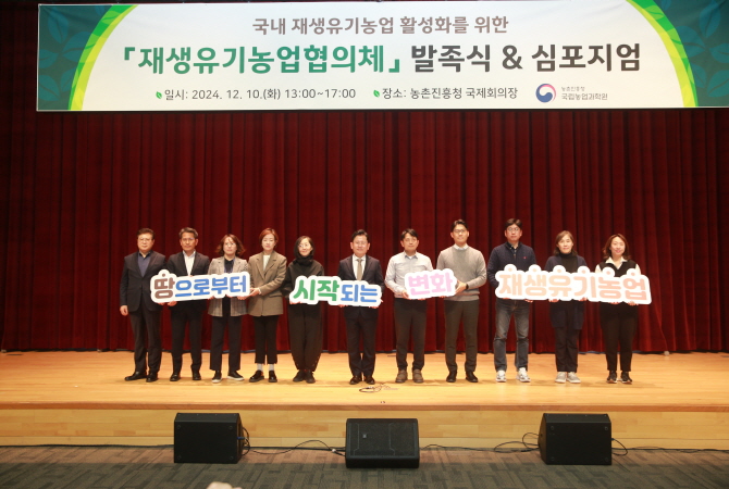 농촌진흥청(청장 권재한) 국립농업과학원은 10일 본청 국제회의장에서 ‘재생유기농업 협의체’ 발족식과 함께 국내외 재생유기농업 동향과 과제, 분야별 재생유기농업 사례를 공유하는 학술토론회를 가졌다.