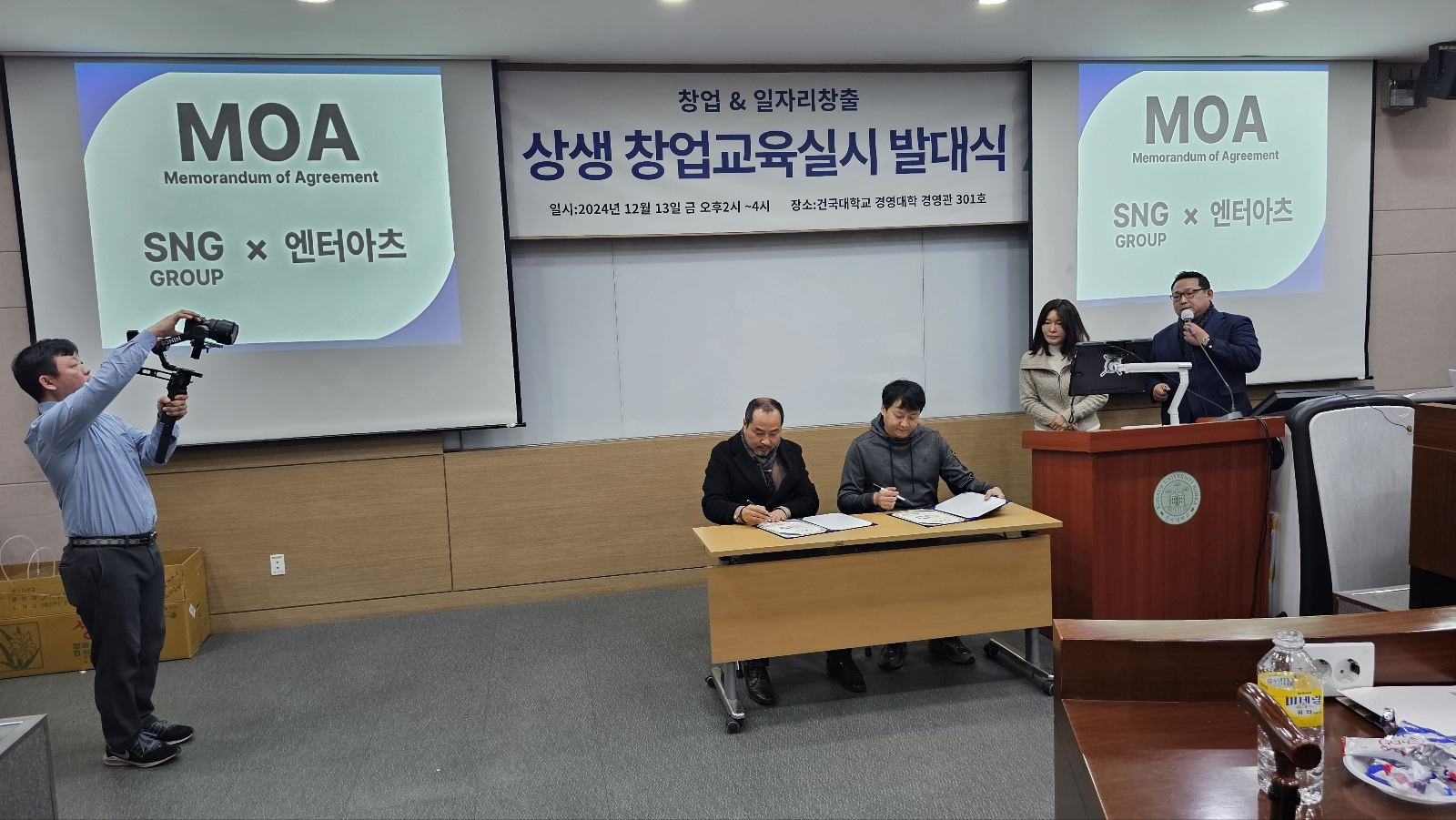SNG GROUP(대표 장성호)은 지난 13일 금요일 오후 2시부터 4시까지 건국대학교 경영대학 경영관에서 창업&일자리 창출 상생 창업교육 발대식을 성황리에 개최했다.