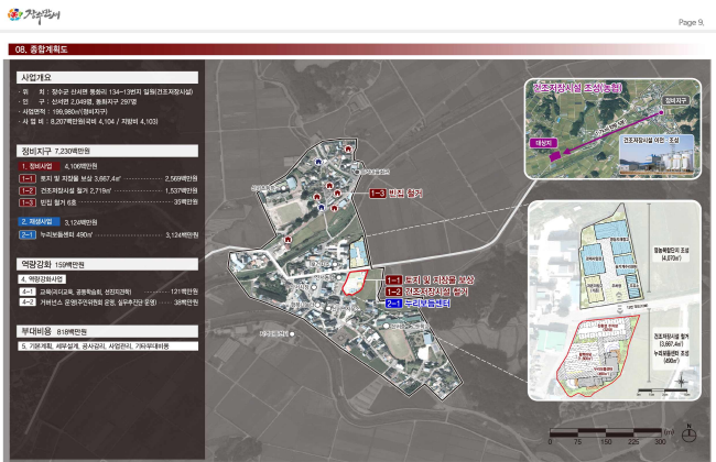 한편 농림축산식품부가 주관하는 농촌공간정비사업은 축사와 공장, 폐건물 등 농촌마을에 산재한 난개발과 유해요소를 정비하고 정비공간을 활용해 주민들을 위한 생활편익 증진시설을 구축해 농촌공간 재생과 정주환경을 개선하는 사업이다.