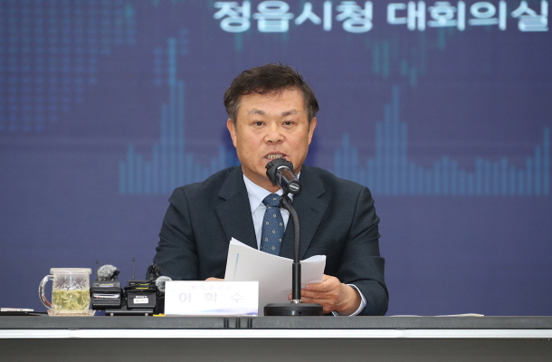 이학수 정읍시장이 21일 시청 대회의실에서 열린 신년 기자회견에서 지난 한 해의 성과와 새해 시정 비전을 시민들에게 전하며 시민중심의 으뜸 정읍 실현을 위해 총력을 다할 것을 다짐했다.