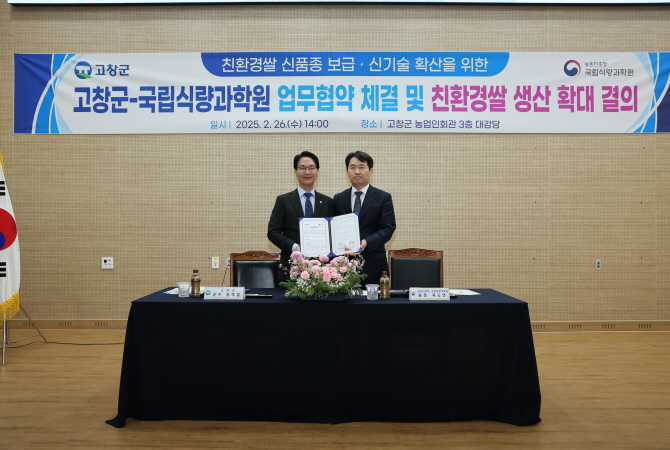 고창군과 식량과학원은 친환경쌀과 가루쌀 재배 농업인에 대한 신품종 종자보급 및 실증시범포 운영, 현장컨설팅, 전문교육 등을 추진하며 상호 교류를 통한 현장 연구와 협력을 강화키로 했다.