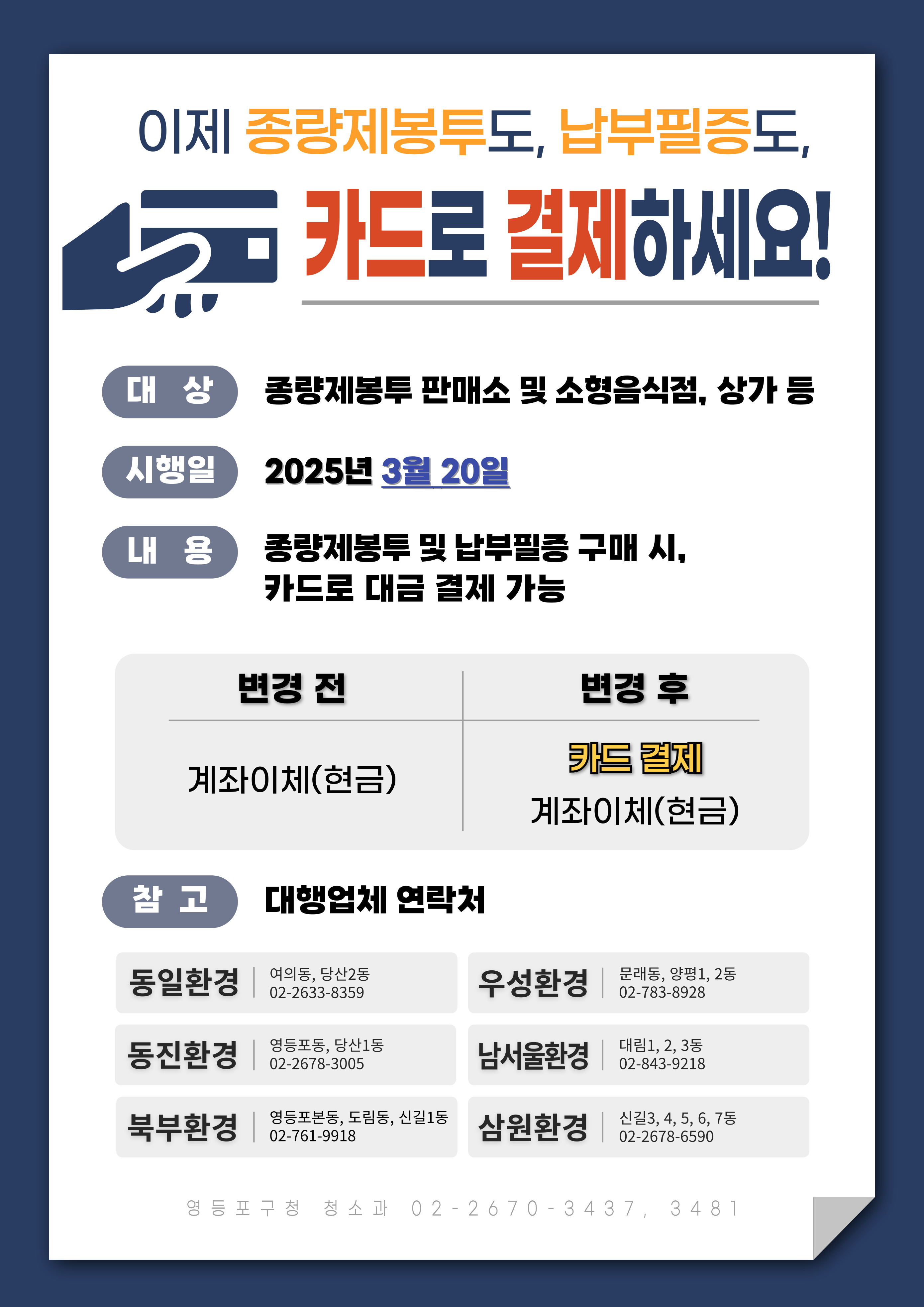 영등포구 소상공인 부담 완화…종량제봉투 및 납부필증 카드 결제 도입 본문