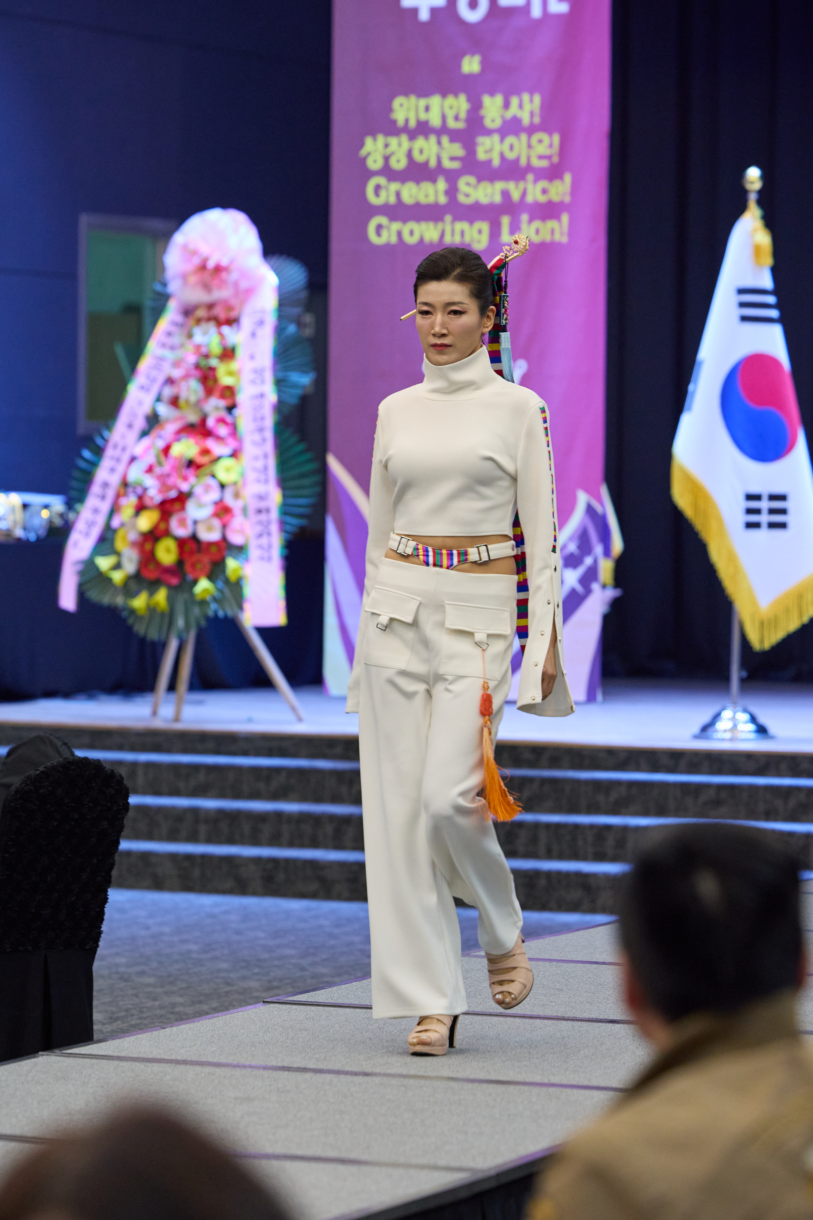 지난 1일(화) 고봉라이온스클럽 회장 취임식 오프닝 무대에 오른 티키팀 미시즈 모델들은 전통 색동 한복을 현대적으로 재해석한 ‘색동 한복슈트’를 입고 런웨이를 장식하며 이목을 집중시켰다.