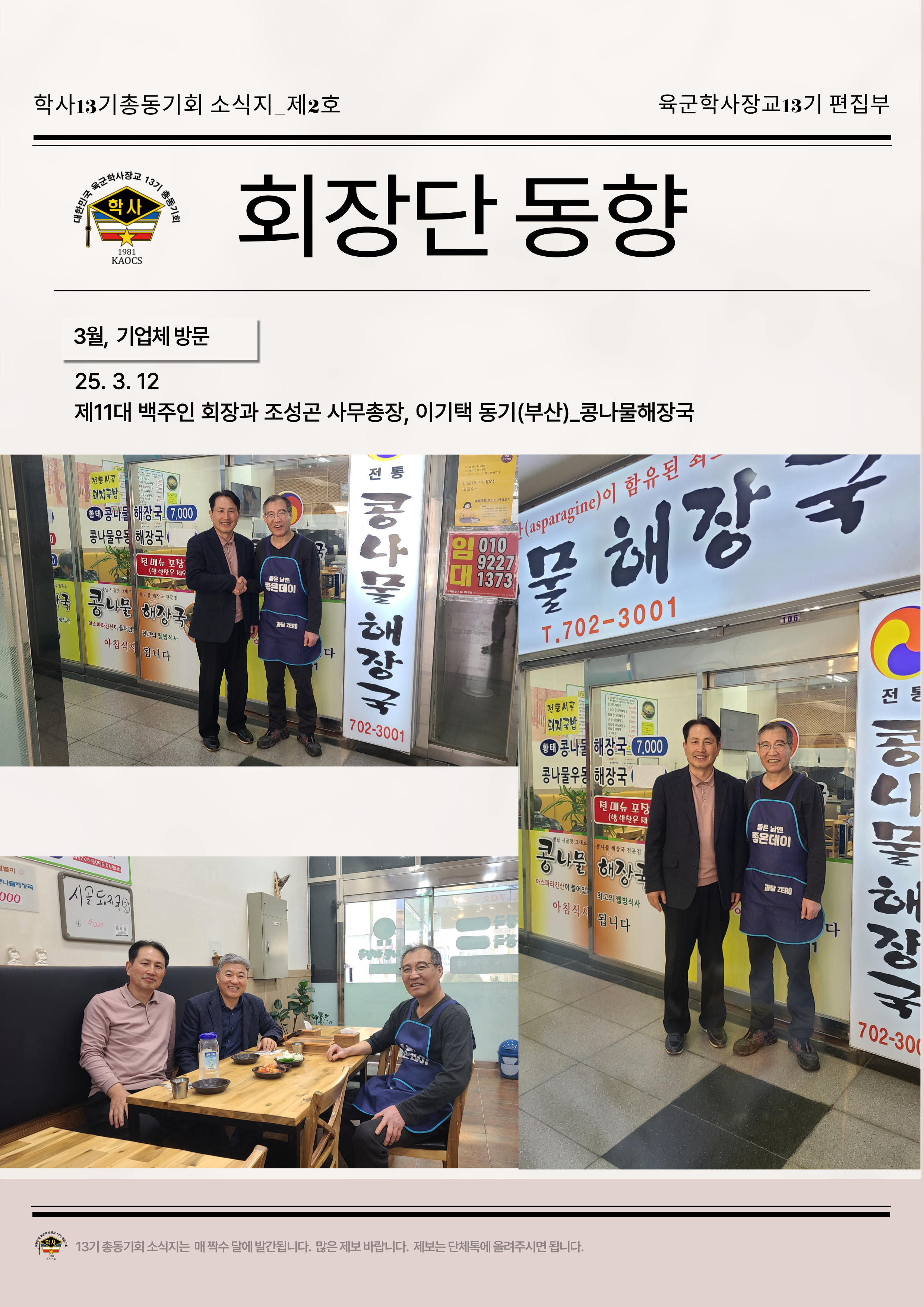 육군학사장교13기총동기회 소식지 제2호_회장단 동향 본문