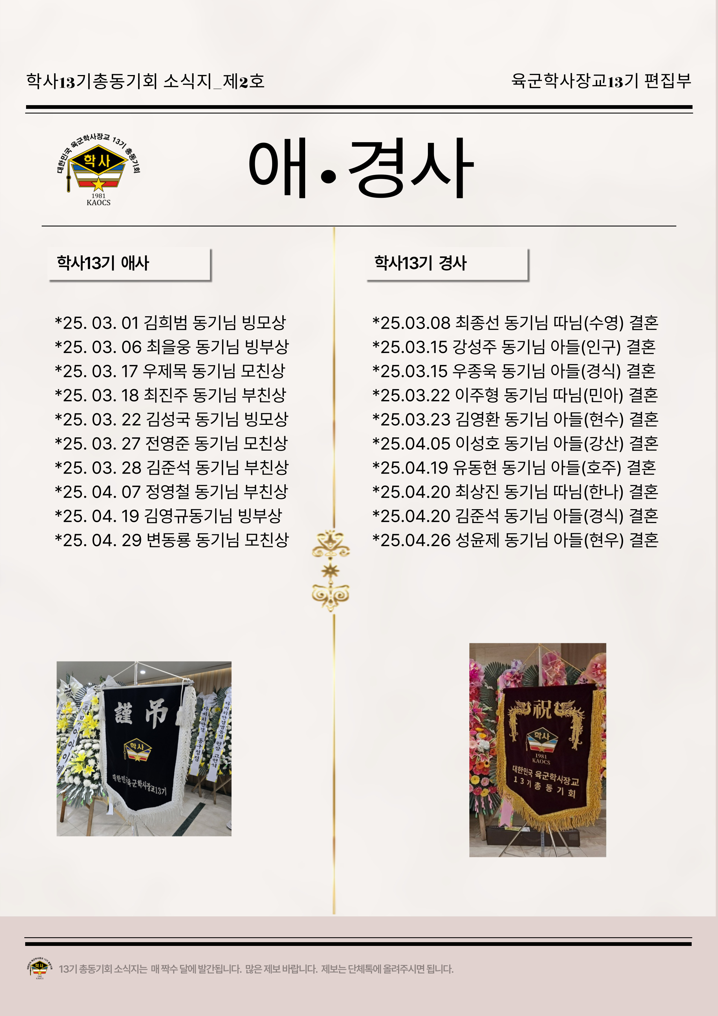| 육군학사장교13기총동기회 소식지 제2호_반갑다 동기야! (0) | 2025.04.29 |