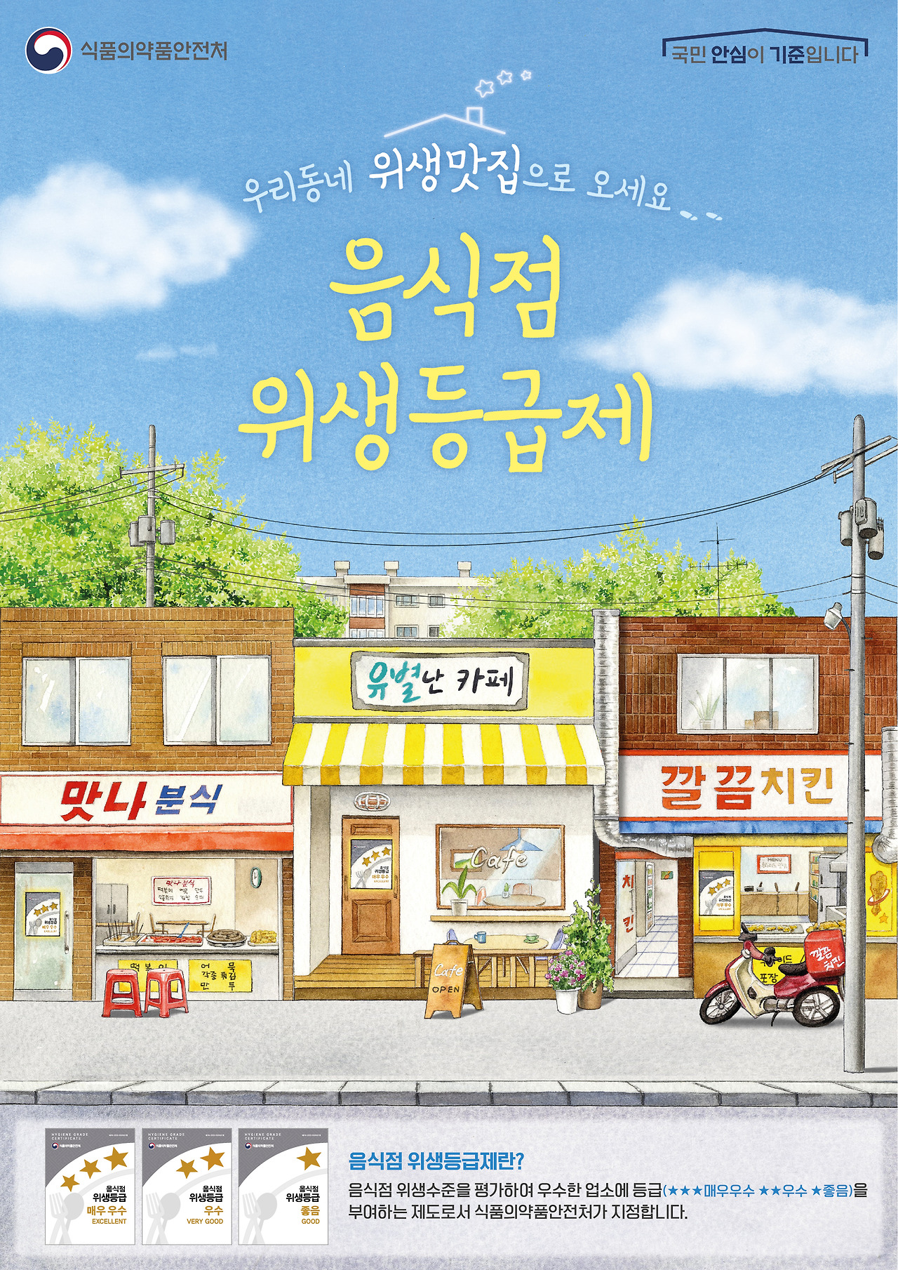‘음식점 위생등급제’란 음식점 위생 상태를 평가해 우수한 업소에 등급을 지정·공개하는 제도이다.