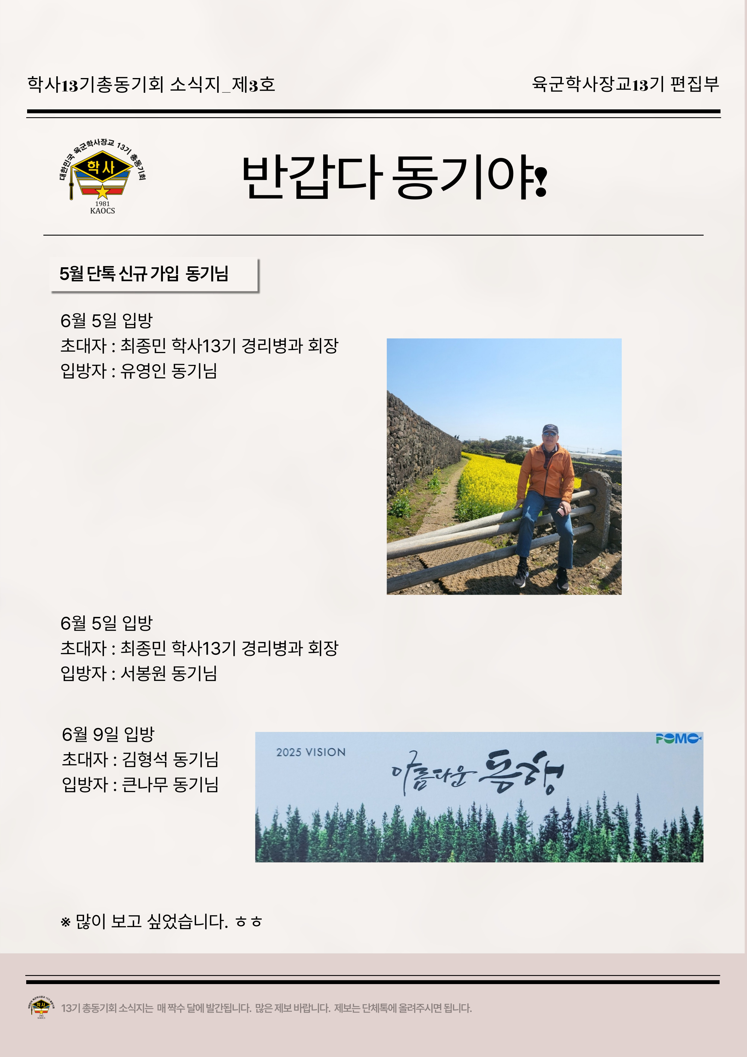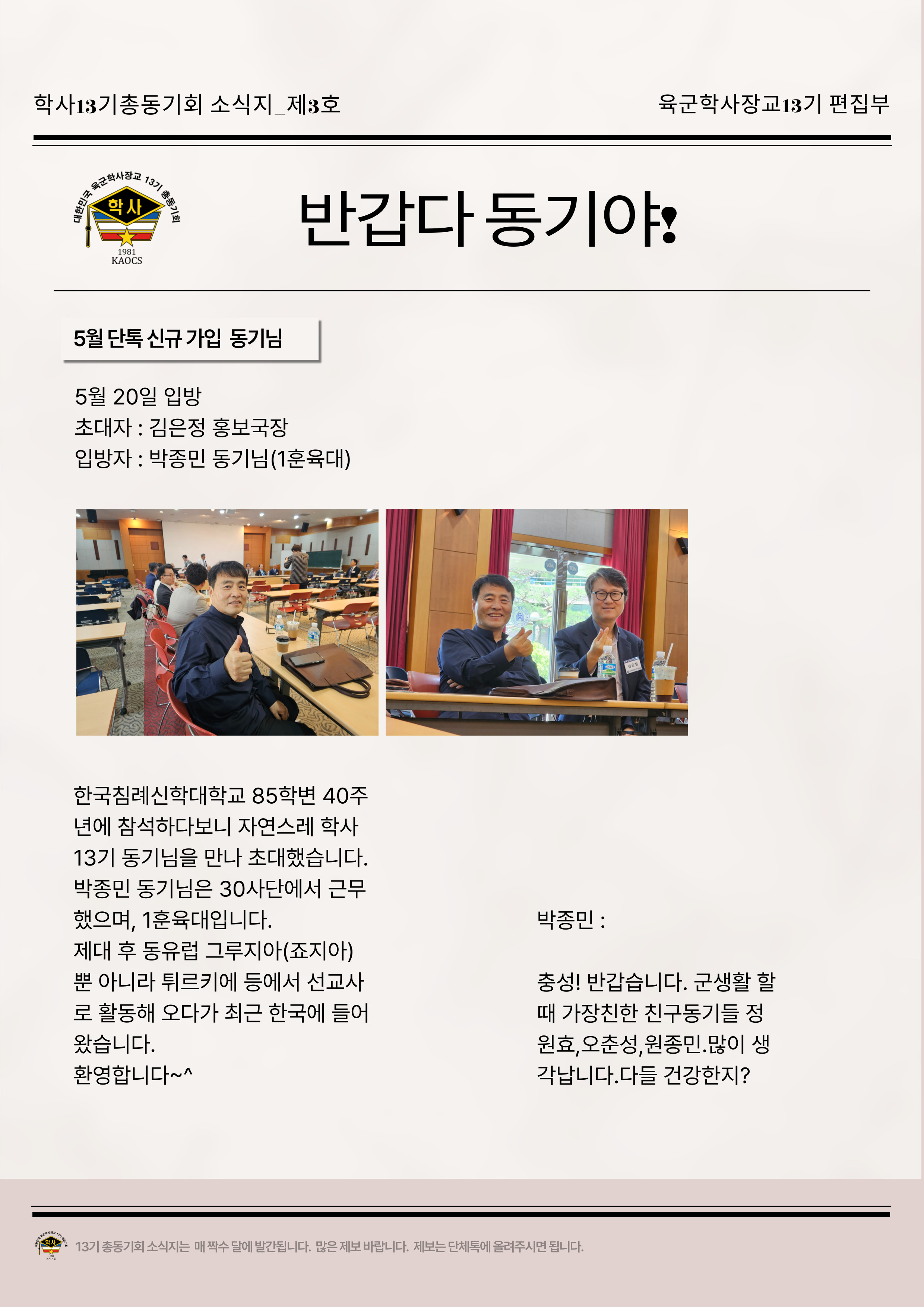 육군학사장교13기총동기회 소식지 제3회_반갑다 동기야 본문
