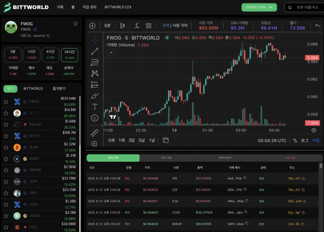 Bittworld DEX 밈코인 화면