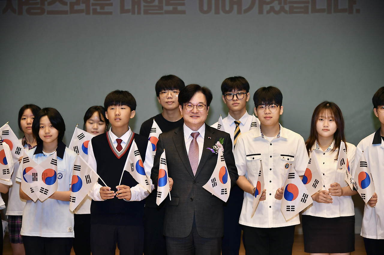 [김포시소비자저널=홍완호 대표기자] 민선8기 김포시가 매년 국경일 행사를 모든 시민에게 개방한 가운데, 함께 한 400여명의 시민이 주체가 되어 의미를 되새길 수 있는 광복절 행사를 개최해 눈길을 끌었다. 김포아트홀에서 15일 열린 제80주년 광복절 경축식은 시민의 참석을 넘어 지역단체가 무대에 올라 직접 광복절 노래를 부르고 김포 청소년들이 만세삼창을 외치는 무대로 구성돼 큰 변화를 체감하게 했다.