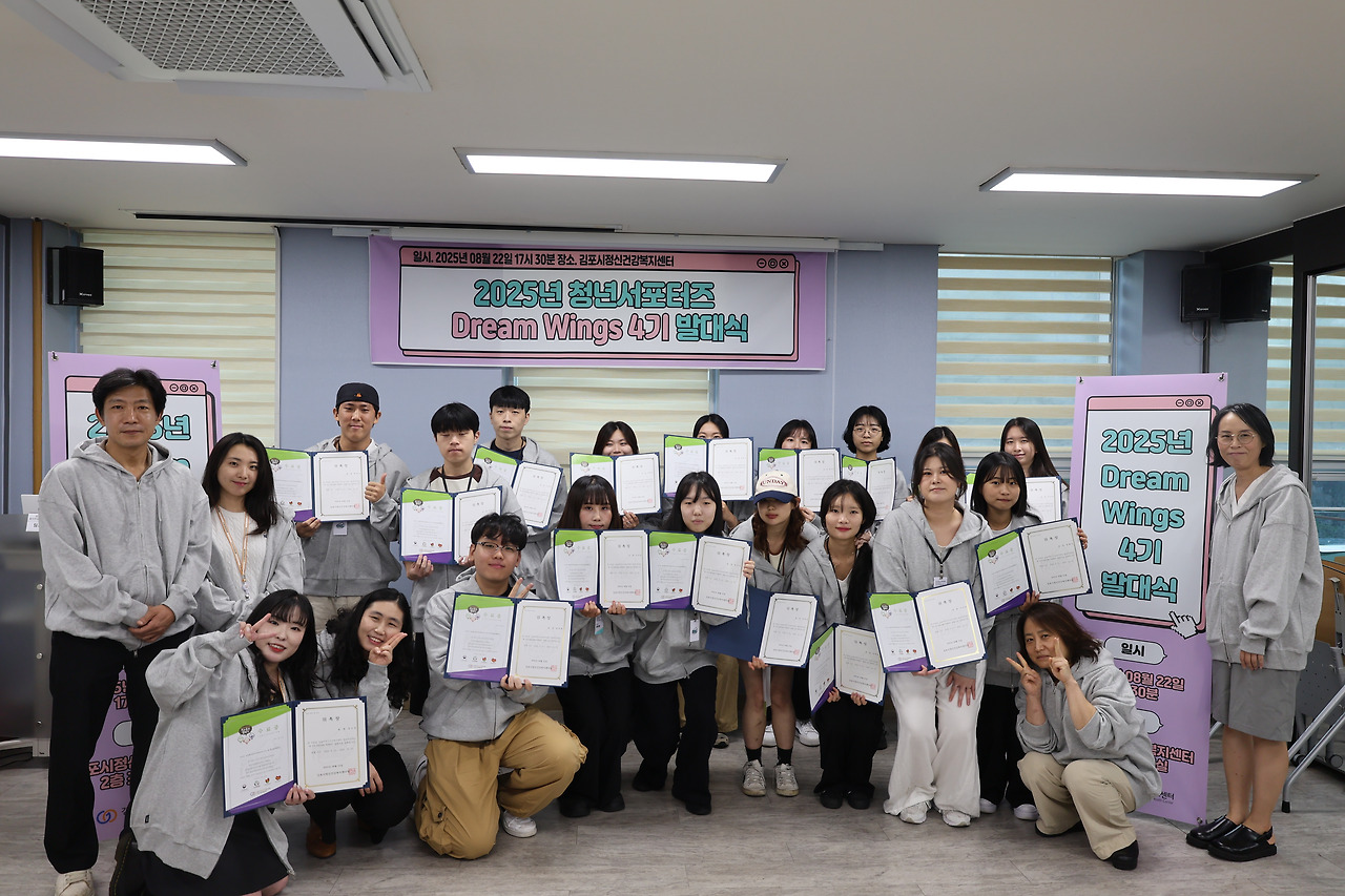 [김포시소비자저널=홍완호 대표기자] 김포시정신건강복지센터(센터장 박병양)는 8월 22일(금), 청년 정신건강 증진을 위한 ‘청년서포터즈 드림윙즈(Dream Wings) 4기’ 발대식을 성황리에 개최했다.