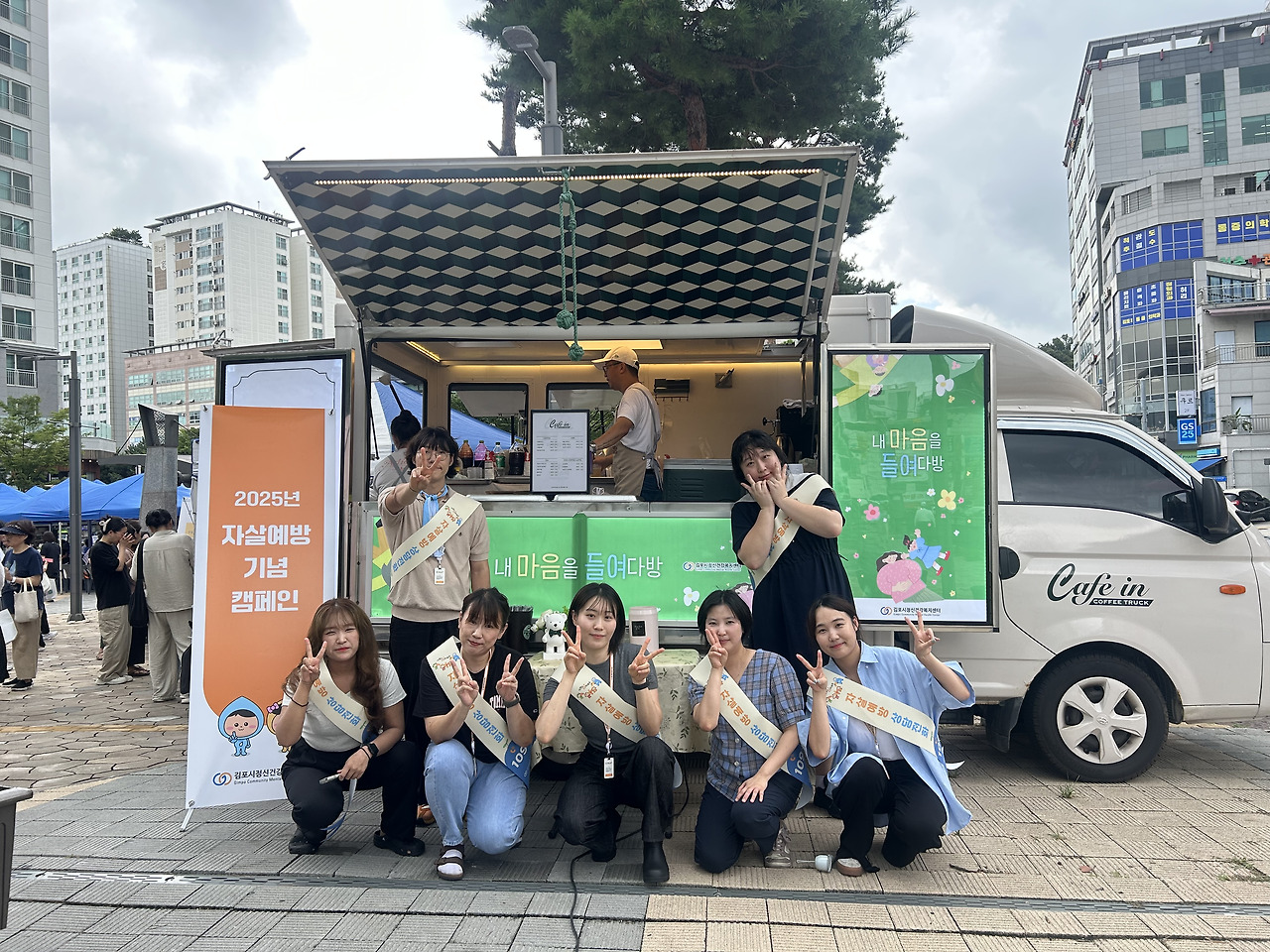 이번 캠페인은 ‘자살 예방의 날’을 맞아 생명존중 안심마을 참여 지역을 중심으로 커피차를 운영하며 지역 주민들의 일상 속 스트레스를 완화하는 데 큰 호응을 얻었다. 아울러 정신건강 선별검사, 자살예방 홍보물 배부 등 다양한 프로그램을 통해 생명 존중의 가치를 되새기고 정신건강과 자살 예방에 대한 인식을 높이는 뜻깊은 자리가 되었다.
