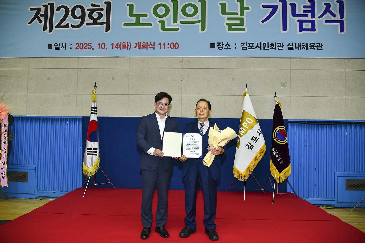 [김포시소비자저널=홍완호 대표기자] 김포시(시장 김병수)는 지난 14일 김포시민회관 실내체육관과 김포종합운동장 일원에서 「제29회 노인의 날 기념행사」를 성대히 개최했다. 이번 행사는 대한노인회 김포시지회(회장 이석영)가 주관하고, 어르신 1,000여 명과 내빈들이 함께해 노인의 날의 의미를 되새기고 어르신들의 노고에 존경과 감사를 표하는 자리로 마련됐다.