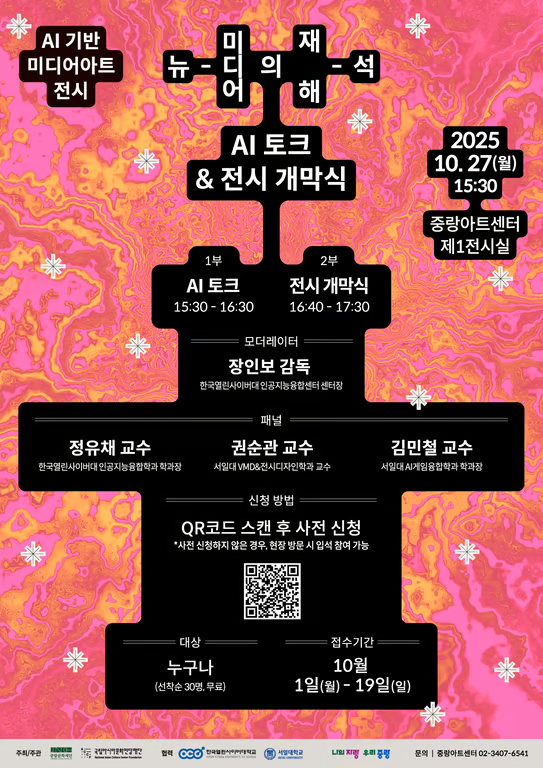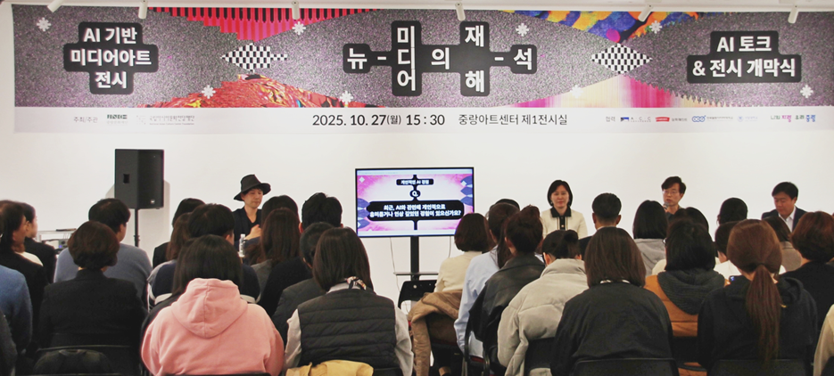 인공지능(AI)과 예술의 융합을 주제로 한 미디어아트 전시 《뉴-미디어의 재해-석》이 지난 10월 27일(월) 중랑아트센터에서 성황리에 개막식을 마쳤다.