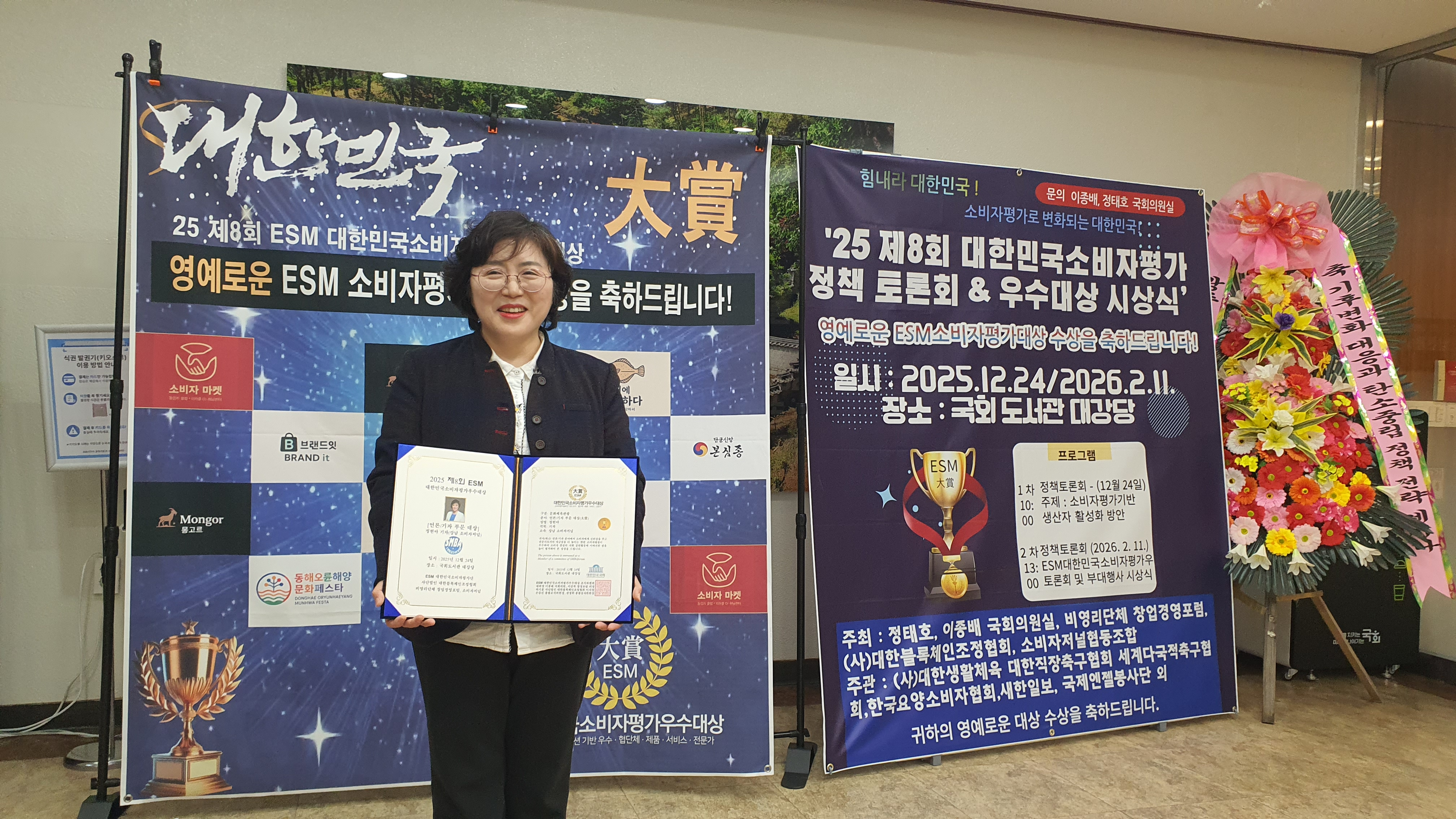 ‘2025 제8회 ESM 대한민국소비자평가우수대상 정책토론회 및 시상식’이 지난 12월 24일 오후 2시, 국회도서관 대강당에서 성황리에 개최됐다.