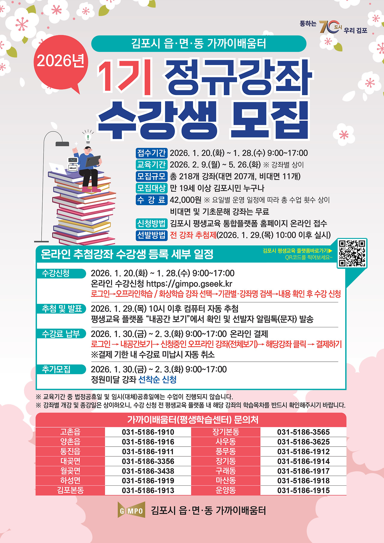 [김포시소비자저널=홍완호 대표기자] 김포시(시장 김병수)는 시민의 평생학습 참여 기회를 확대와 지역 밀착형 학습 환경 조성을 위해 2026년 읍면동 가까이배움터 제1기 수강생을 모집한다고 밝혔다.