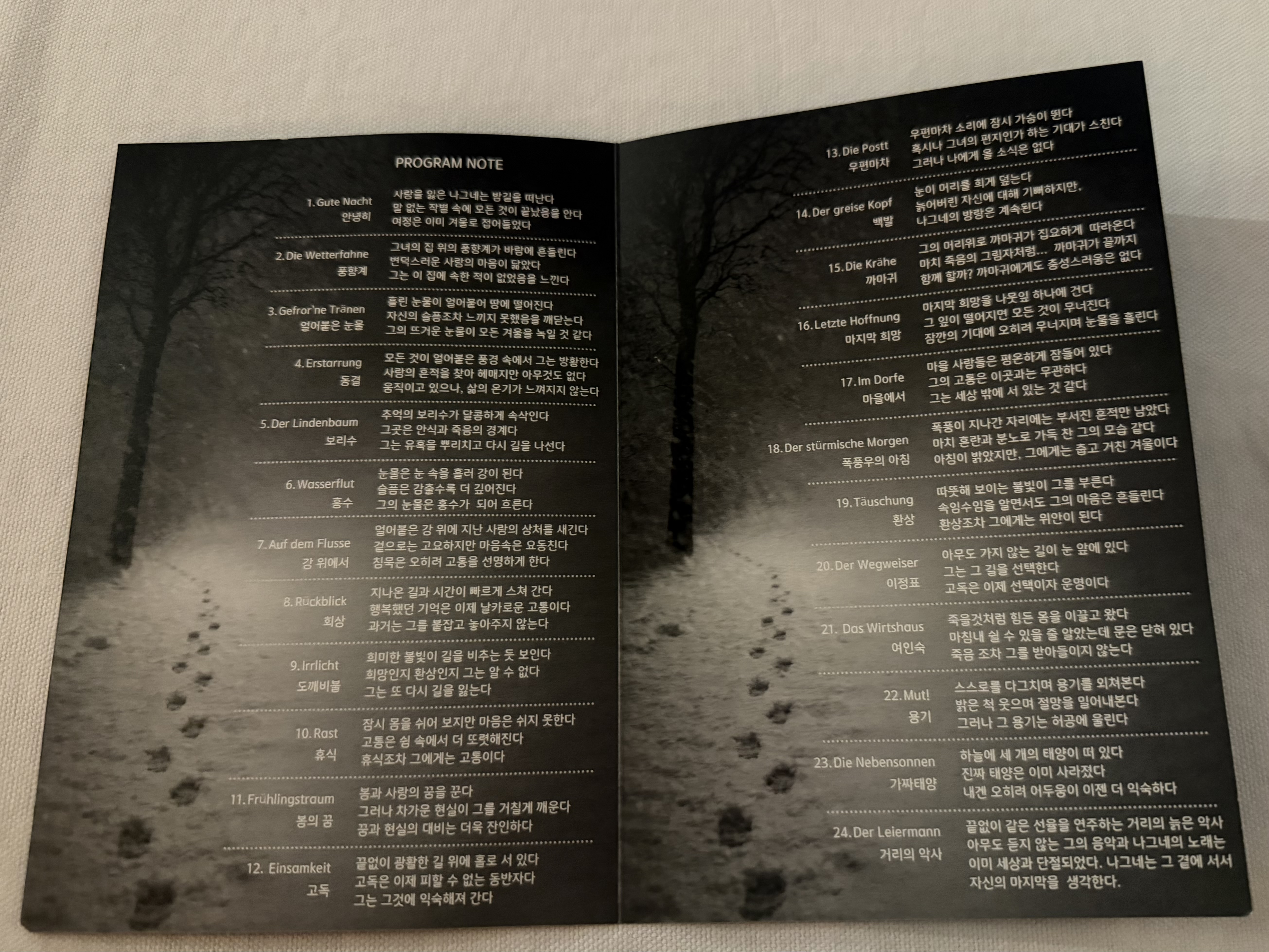 슈베르트의 《겨울나그네》는 24곡으로 이루어진 연가곡이었다.