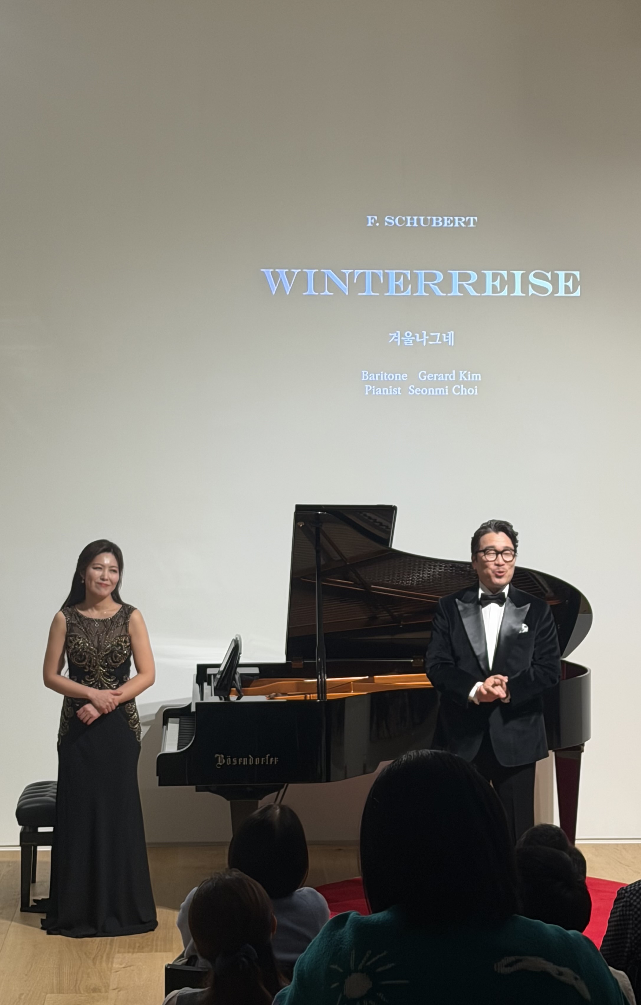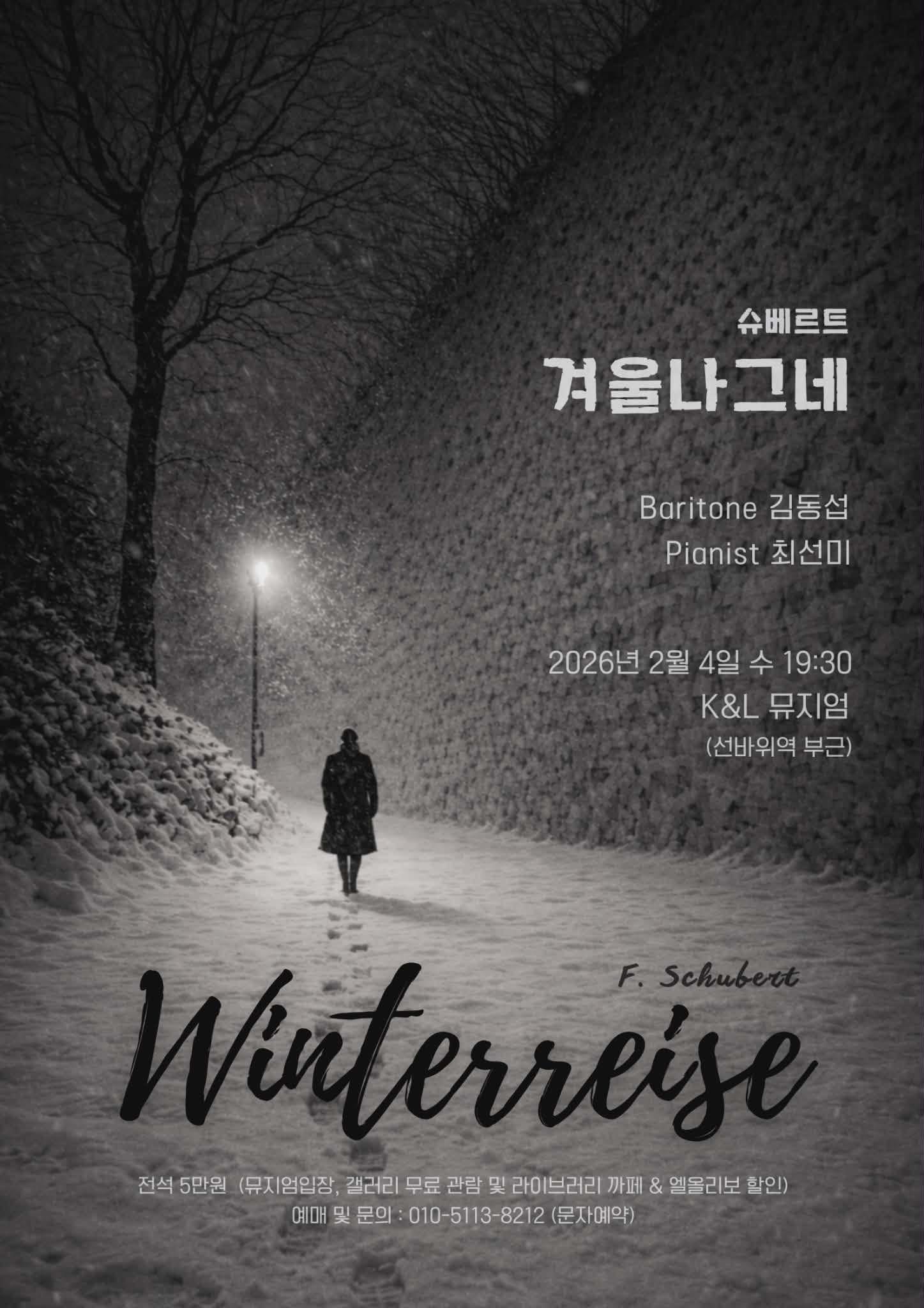 이번 《겨울나그네》는 슬픔을 과시하지 않았다. 감정의 과잉 없이 텍스트의 무게를 끝까지 존중하며 겨울을 통과했다. 성악은 감정을 연기하지 않고 고독을 견디는 방식으로 노래했고, 피아노는 음악이 아니라 시간처럼 흘러가고 있었다.