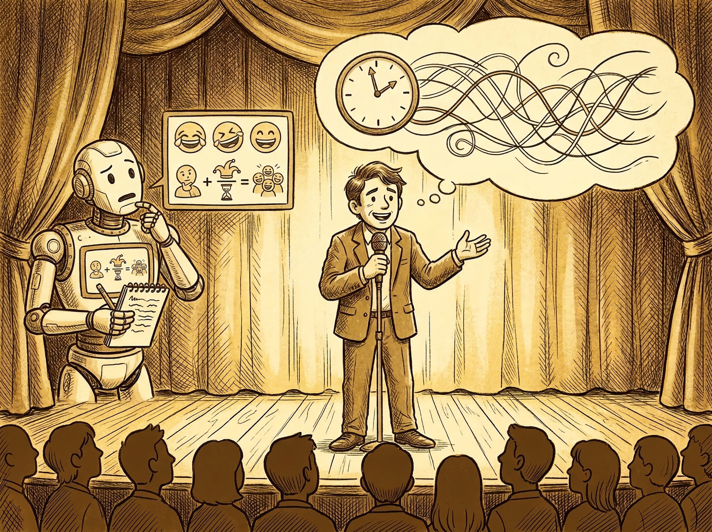 넘어져 본 사람만이 넘어짐의 우스움을 알고, 창피를 당해본 사람만이 민망함의 결을 안다. 개그 맨은 실패한 대본, 싸늘한 객석, 엇나간 타이밍을 자기 몸으로 통과하면서 웃음을 배운다. 그래서 그의 한마디에는 기술만이 아니라 체온이 실린다. AI는 웃긴 말의 패턴을 배울 수 있지만, 적어도 지금까지는 왜 인간이 웃어야만 겨우 버틸 수 있는 존재인지를 경험으로 이해하지는 못한다.