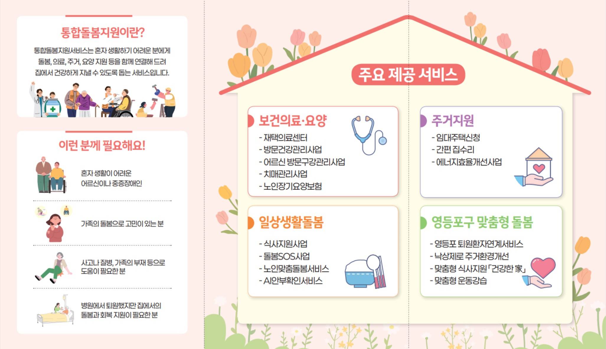 - 의료·요양·건강관리 ‘원스톱’ 지원… 돌봄이 필요한 65세 이상 노인 및 중증장애인 대상